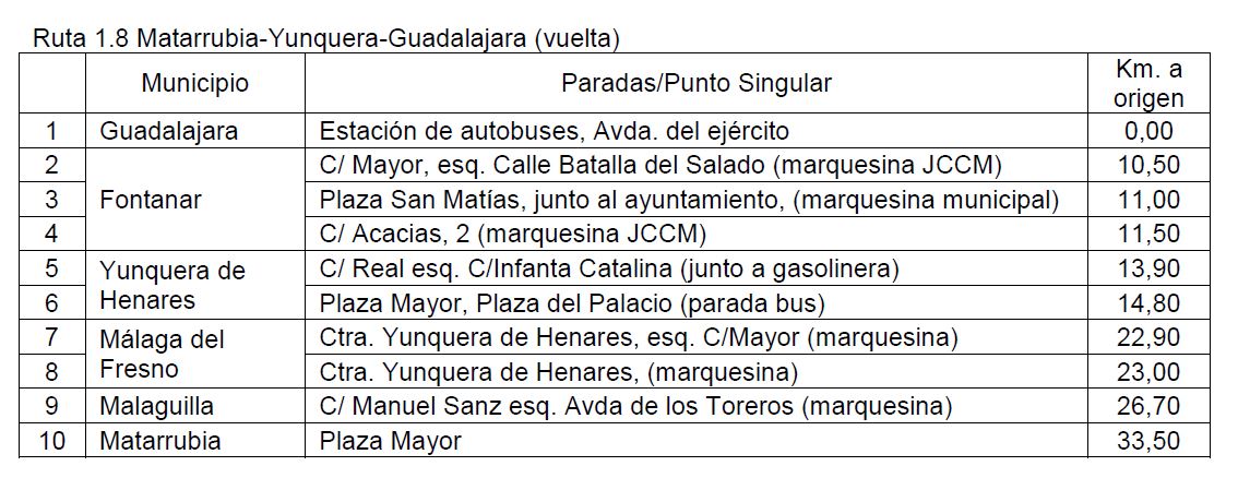 . - Matarrubia–Yunquera–Guadalajara (ida): 34,3 km, pasando por Malaguilla y Málaga del Fresno