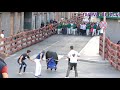 Además del toro número 24, que quedó detenido en el entronque superior de la calle Mayor, otros dos toros se rezagaron en la zona de Capitán Arenas, obligando a extremar las precauciones también en ese tramo del recorrido. La coordinación entre pastores, corredores y el equipo de seguridad y puestos de mando permitió gestionar estos momentos con eficacia, evitando incidentes y manteniendo el control de la manada partida en diferentes tramos en todo momento.