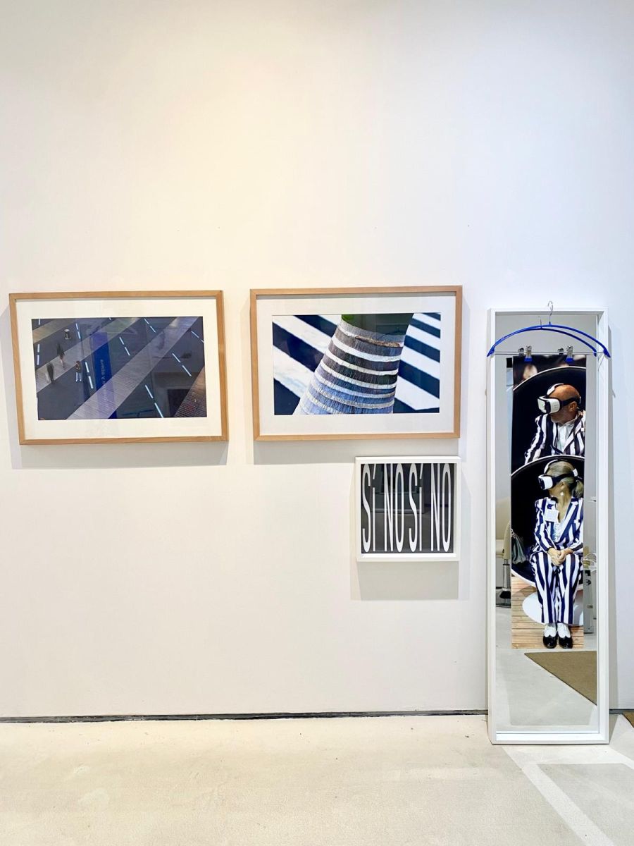 Su «Pixel Protector» nos protege de un mundo indiscreto donde todos somos reporteros improvisados, cámara en mano, su «Botarga Jacket» nos permite apreciar lo cercano, dejando de buscar la excelencia en exóticos paraísos lejanos, sus «Pasos de cebra» ordenan el tránsito y la mirada. Estas obras y algunas más se pueden ver en esta exposición donde, el juego de espejos nos lleva a preguntarnos ¿y yo? ¿cómo visto y vivo yo?