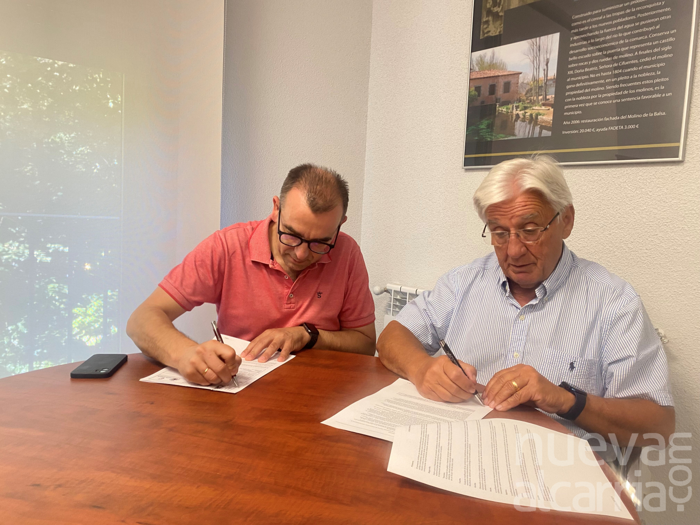 El presidente de FADETA, Jesús Ortega, y el alcalde de Cifuentes, Marco Antonio Campos, han firmado el contrato de ayuda Leader para el acondicionamiento de la Vivienda Tutelada para Mayores que existe en dicho municipio.
