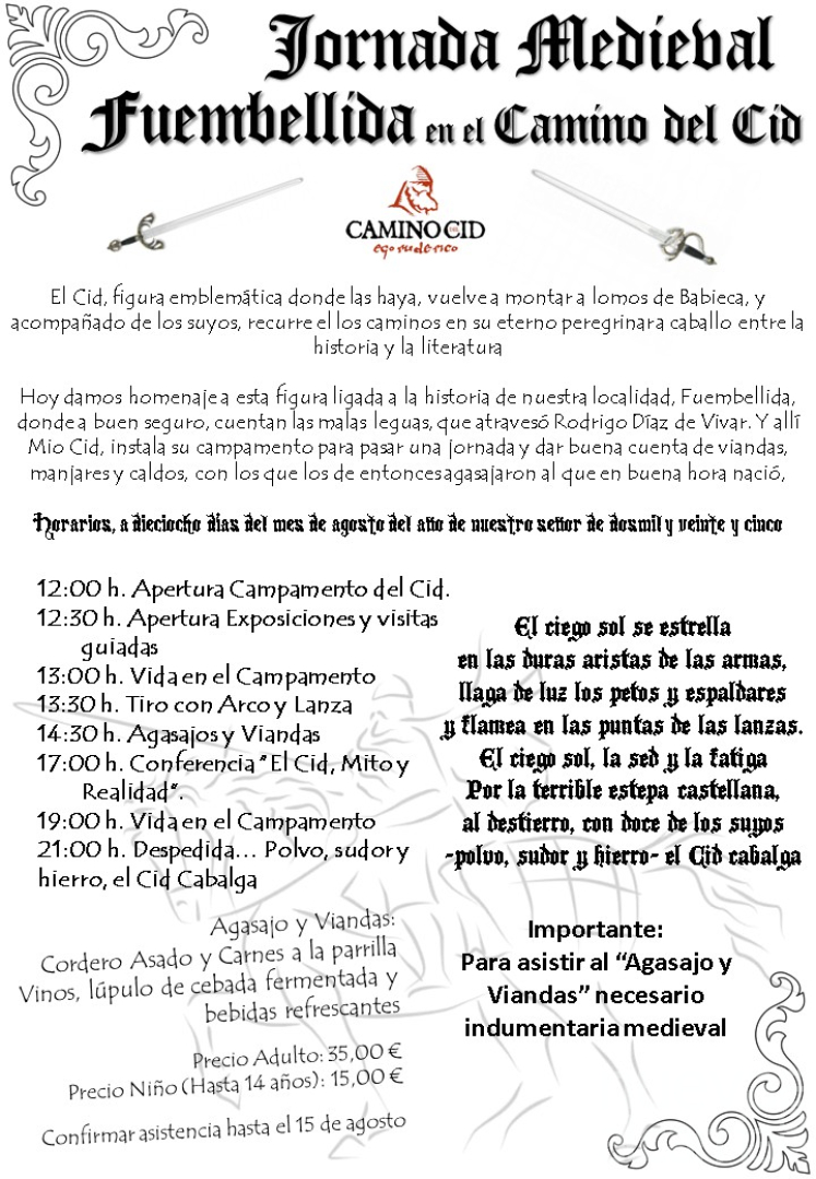 Con actividades para todos los públicos y un ambiente fiel a la época, Fuembellida se convertirá por un día en escenario vivo de las gestas del Cid Campeador.