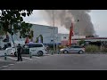 Un video grabado por nuestro compañeros Rafael Martín horas después del inicio del fuego, muestra el incendio todavía activo, con la gran nube de humo ya de color negro y el ruido de varias explosiones en el interior de la nave, presumiblemente relacionadas con el material almacenado.
