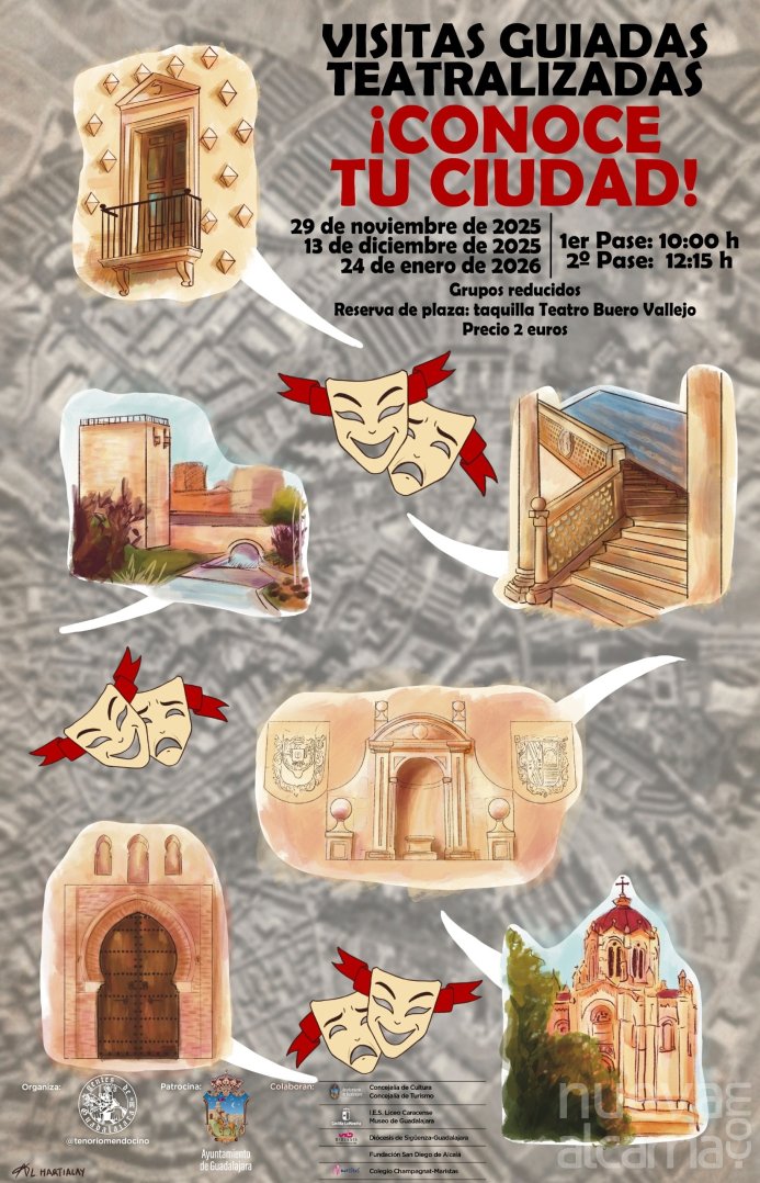 El Ayuntamiento de Guadalajara, en colaboración con la Asociación Gentes de Guadalajara, organiza una nueva edición de las visitas guiadas teatralizadas bajo el título '¡Conoce tu ciudad!', que tendrán lugar los días 29 de noviembre, 13 de diciembre de 2025 y 24 de enero.