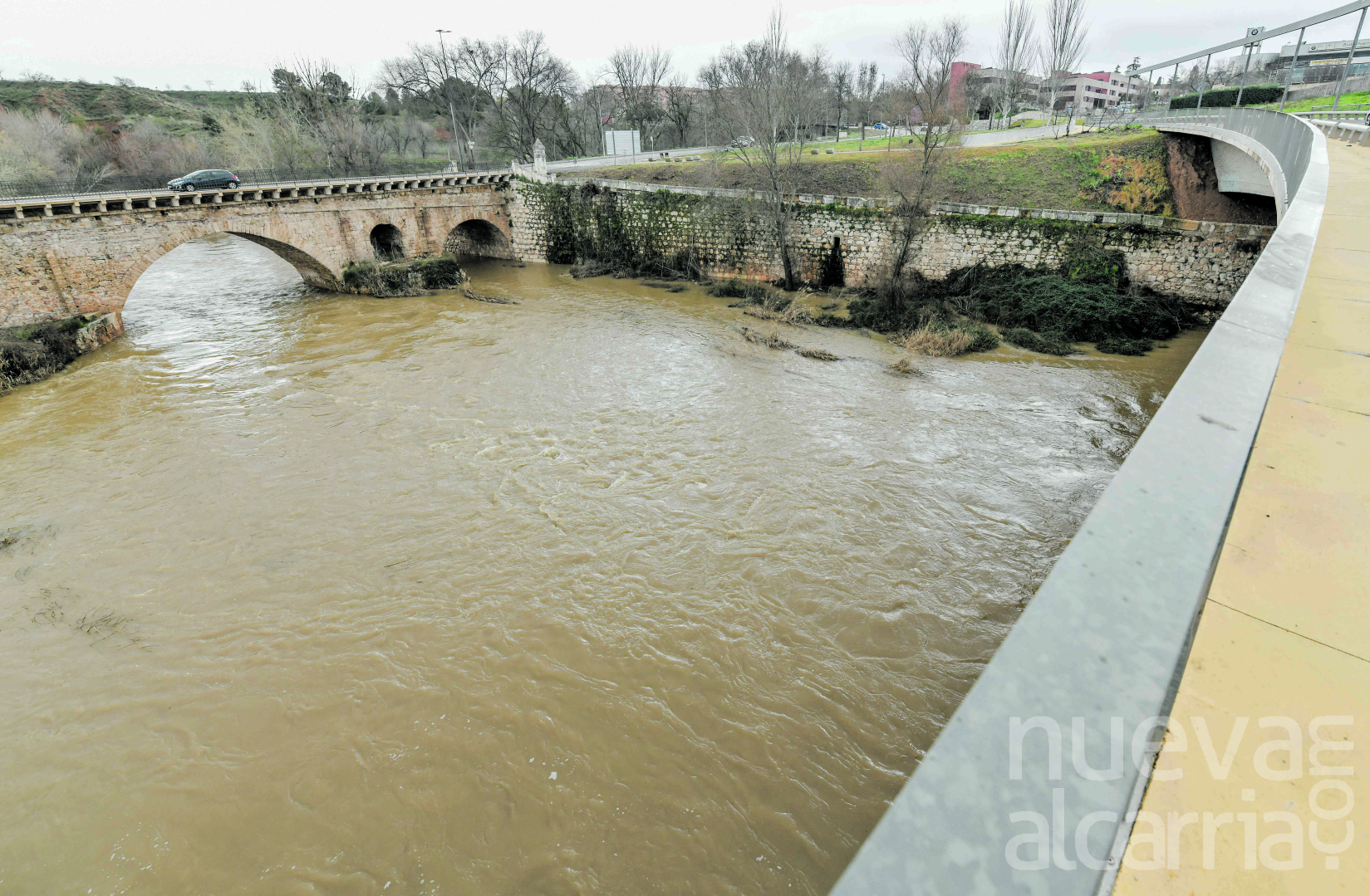 El Henares roza el nivel rojo a su paso por Guadalajara y el Ayuntamiento refuerza la vigilancia