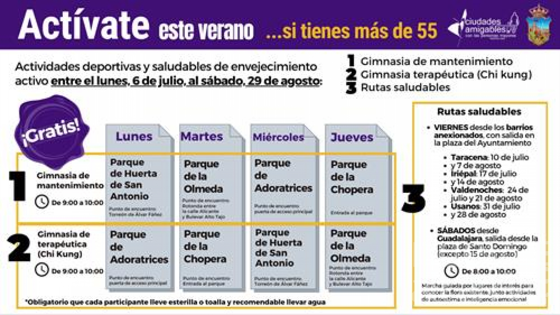 La Concejalía de Bienestar Social, Diversidad y Cooperación del Ayuntamiento de Guadalajara ha puesto en marcha el programa 'Actívate en Verano', con acciones de envejecimiento activo dirigidas a las personas mayores a partir de 55 años.