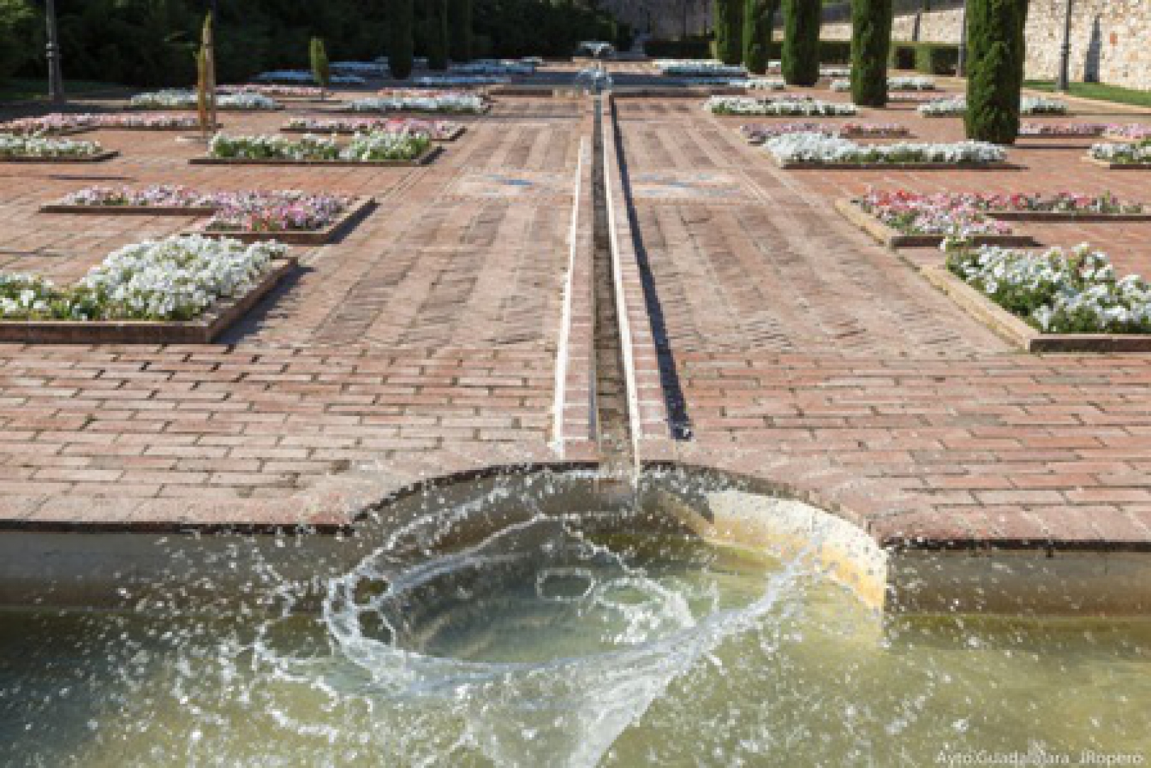 El Ayuntamiento renueva las flores dos veces al año, solapando las flores de la temporada invernal con la estival. El trabajo se realiza a través de la empresa de mantenimiento de jardines, UTE Jardines Guadalajara, y por la Brigada Municipal de Parques y Jardines.