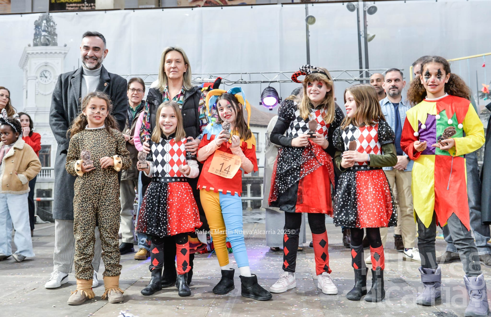 Tras varios días de lluvia, el sol ha acompañado por fin la jornada, permitiendo que los pequeños lucieran sus disfraces con toda ilusión. La alcaldesa de Guadalajara, Ana Guarinos, ha presidido la posterior entrega de premios, acompañada por el concejal de Festejos, Santiago López Pomeda y otros miembros de la Corporación Municipal, así como por el pregonero del Carnaval, Felipe Sanz.