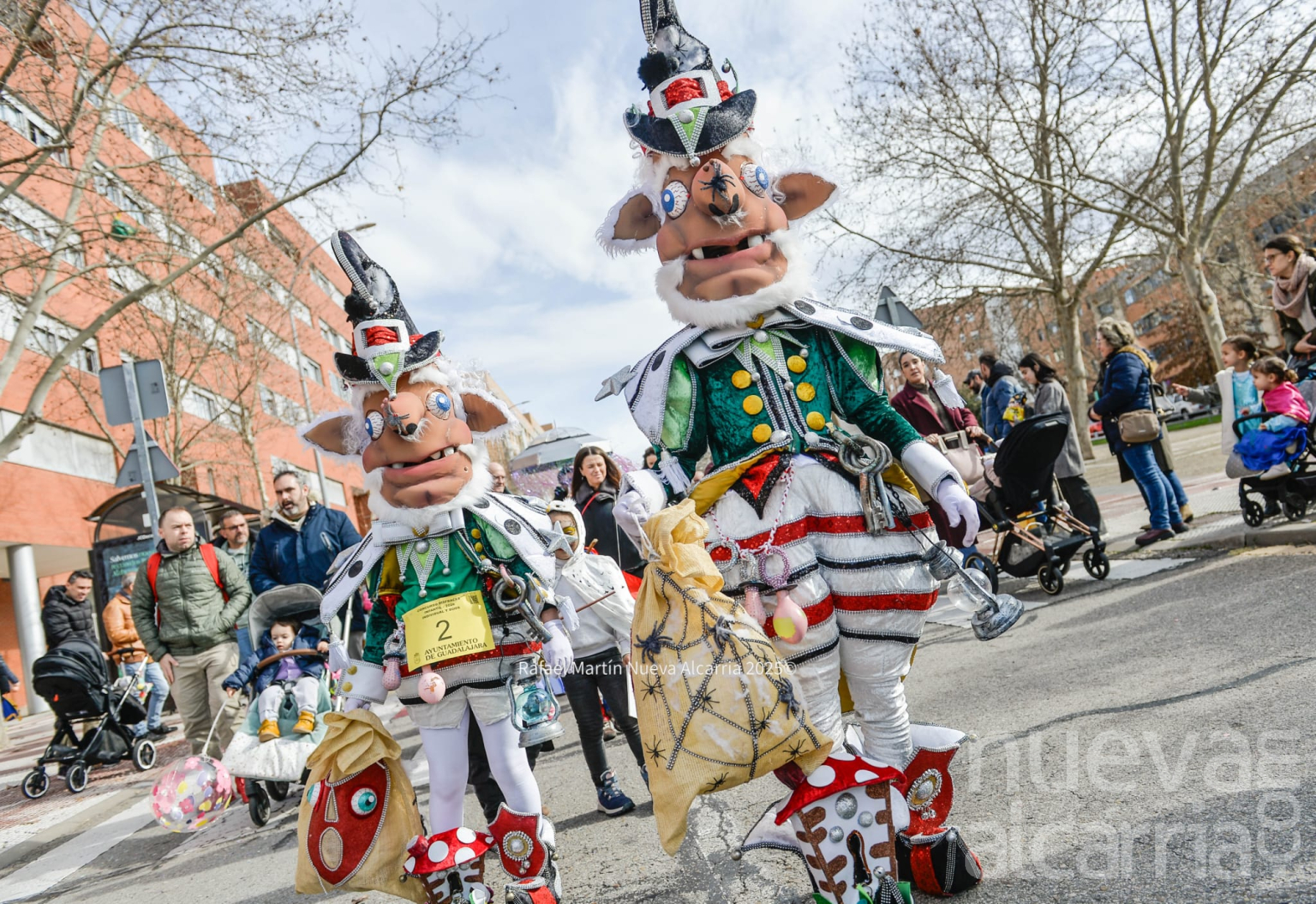 La concentración ha comenzado a las 11:00 horas en la avenida Buendía 19, y a las 11:30 horas, el desfile ha iniciado su recorrido por el bulevar de Entrepeñas y la Avenida del Vado hasta llegar al Palacio Multiusos, acompañados por los Gaiteros de Mirasierra, los Dulzaineros de Guadalajara, una pareja de gigantes y los tradicionales cabezudos, que han despertado sonrisas entre los más pequeños. También participaron las botargas de Guadalajara y el grupo Mascarones.