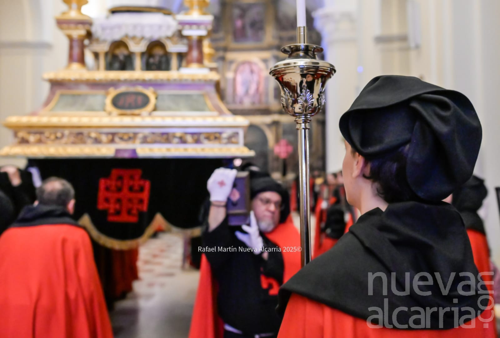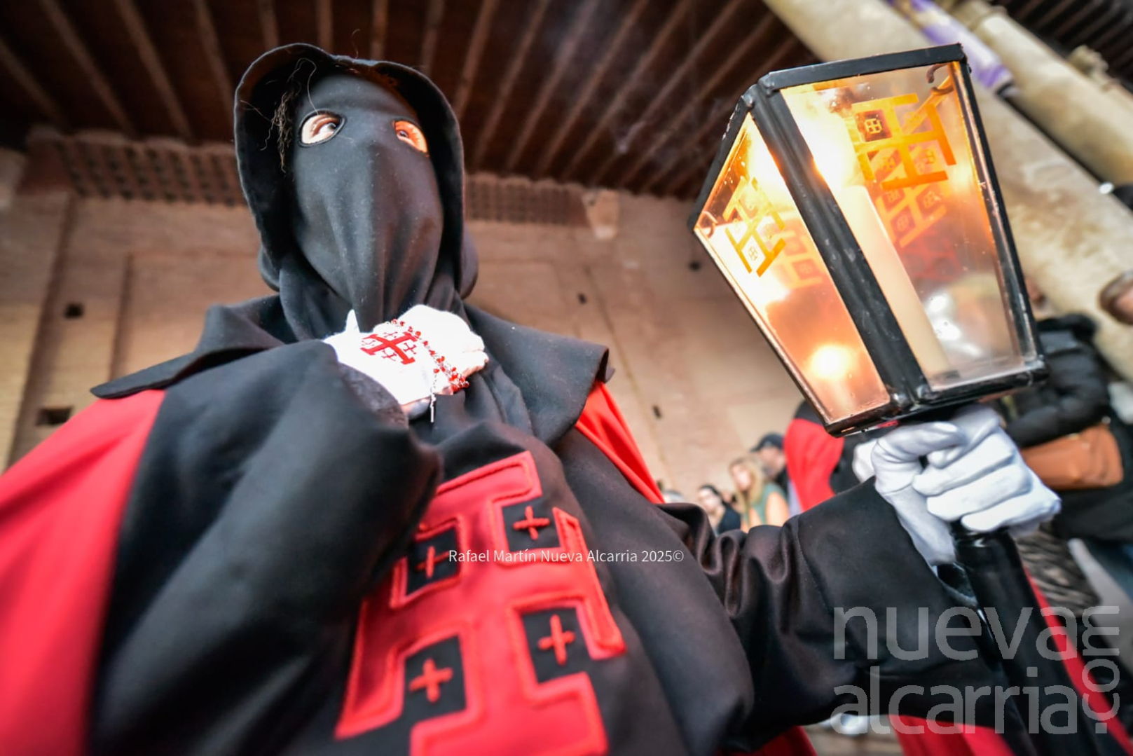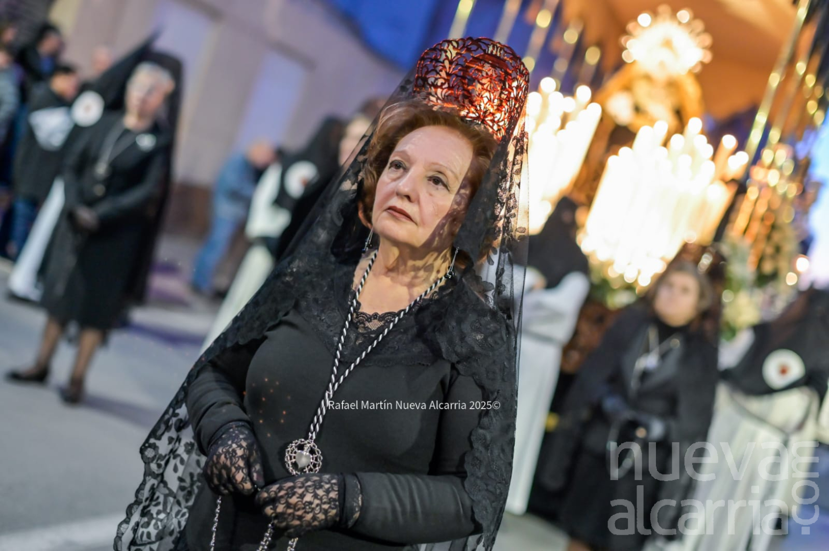 El desfile avanzó por las calles del centro histórico —Plaza de Santa María, Calle Mayor, Plaza de Bejanque y el resto del recorrido oficial— con pasos que brillaban bajo la luz de faroles decorados con la cruz roja de Jerusalén y velas que proyectaban sombras alargadas sobre las fachadas. La multitud, compacta pero respetuosa, aplaudía en silencio al final de cada paso; algunos vecinos asomados a balcones y niños de la mano de sus padres vivían la tradición como un legado familiar.