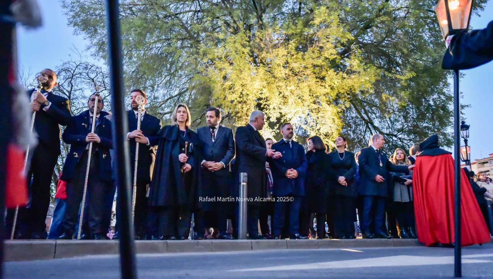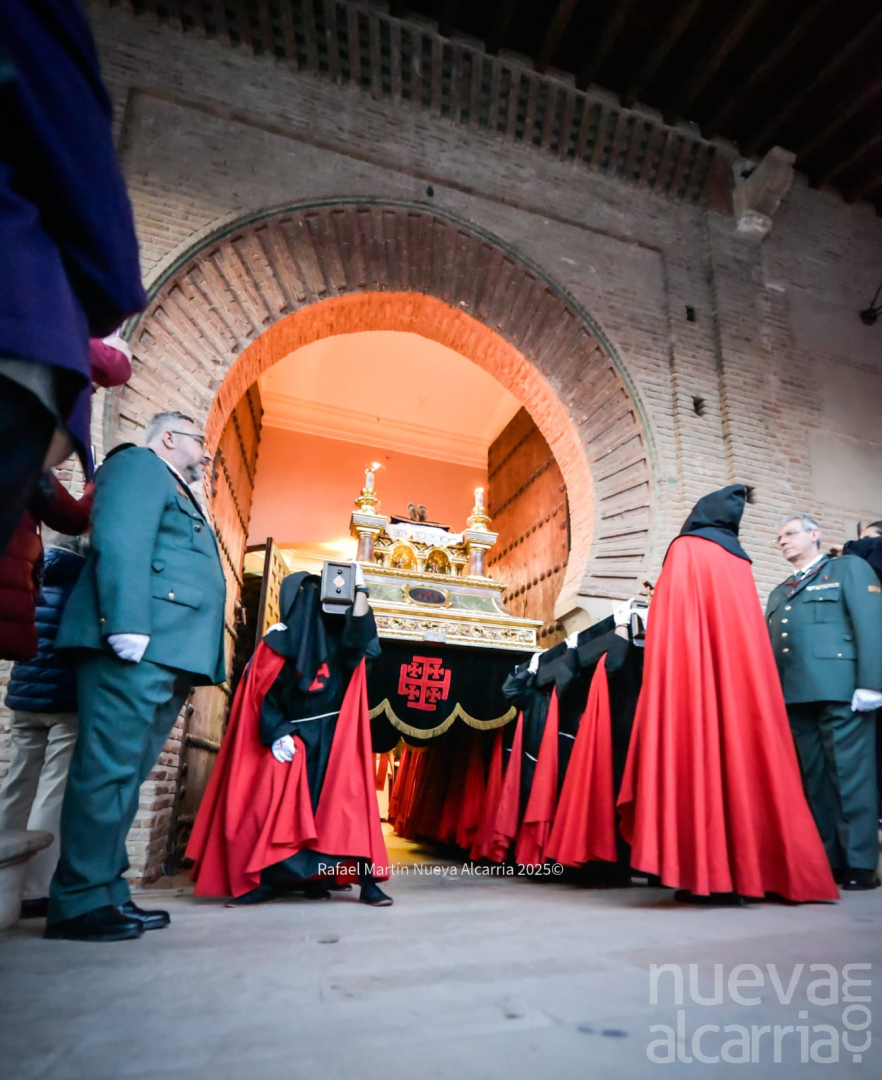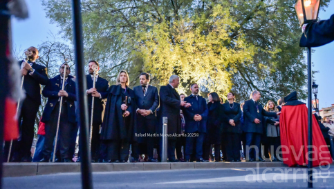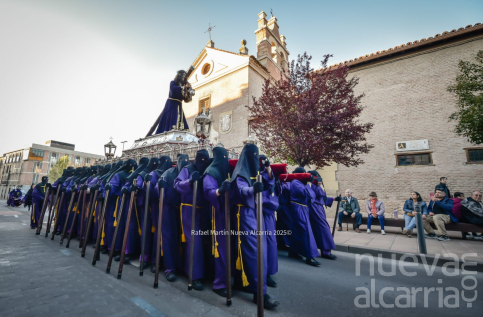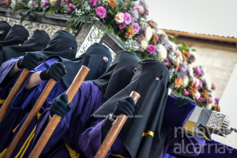 Cerró la comitiva la Hermandad de Nuestra Señora de la Soledad, incorporada tras su encuentro matinal. Portaba la imagen titular de la Virgen bajo palio y el Cristo del Consuelo, con la Banda Sinfónica Complutense de Alcalá de Henares que acompañaba con marchas lentas y emotivas. Entre los fieles destacaban mujeres con mantillas negras y peinetas de carey, algunas con lágrimas contenidas al paso de la Soledad; el conjunto transmitía el dolor materno que tantos hermanos reviven cada año.