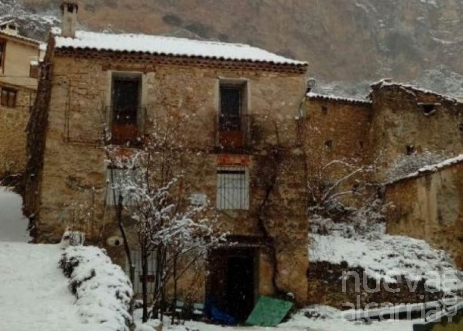 La provincia tiene alerta amarilla por nevadas para la jornada de este lunes. En la imagen, la localidad molinesa de Huertapelayo que este domingo ha acumulado más de veinte centímetros de nieve, siendo necesaria la actuación de la Guardia Civil para rescatar un vehículo a la salida del pueblo.
