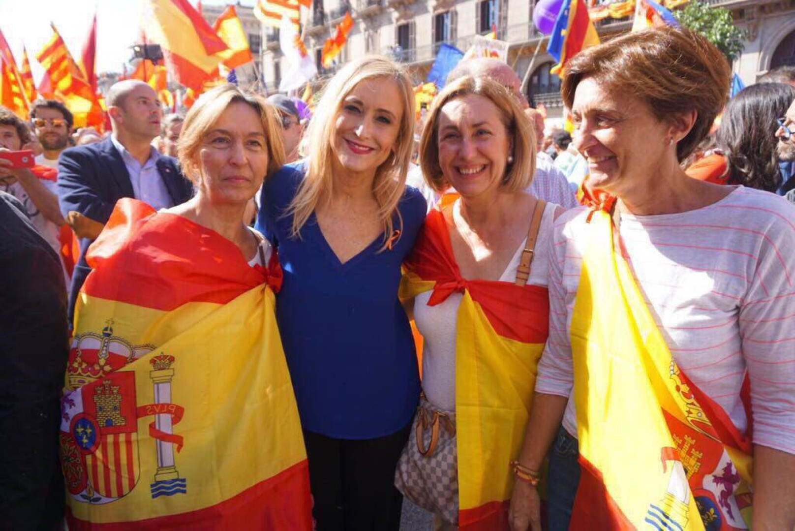 En la cabecera de esta manifestación ha estado la ministra de Sanidad Dolors Montserrat, la presidenta de la Comunidad de Madrid, Cristina Cifuentes, el delegado del Gobierno en Cataluña, Enric Milló, el presidente del PP catalán,Xavier García Albiol y representantes tanto del PP como de Ciudadanos, entre ellos su presidente Albert Rivera y la lider catalana,Inés Arrimadas. También ha habido representación del PSC, que aunque no estaba entre los convocantes, había animado a la militancia a asistir a la concentración.