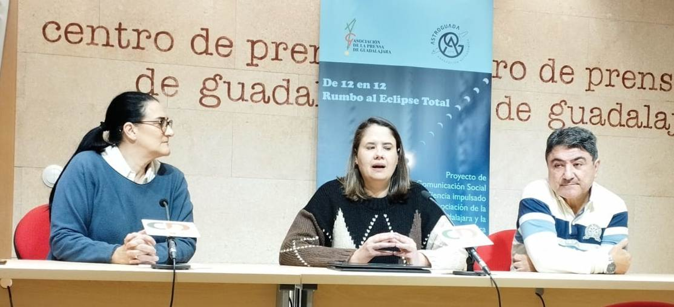 En esta cita del mes de enero con el proyecto de Comunicación Social de la Ciencia “De 12 en 12 – Rumbo al Eclipse Total impulsado por la Asociación de la Prensa de Guadalajara (APG) en colaboración con la Agrupación Astronómica de Guadalajara (AstroGuada), además de la periodista Susana Abella ha estado también Mino Rodríguez, también periodista y miembro de la junta de la Agrupación Astronómica Provincial de Guadalajara. Este ha valorado positivamente esta línea de ayudas de Diputación. “Esto significa que algo se está moviendo y que hay preocupación por parte de nuestras instituciones y administraciones sobre este evento único y exclusivo”, ha apuntado, pues ha dejado claro que “va a ser el eclipse de nuestras vidas”. De cara a ese 12 de agosto ha insistido en que aquellos que quieran verlo planifiquen bien dónde verlo y buscan un punto elevado y con el horizonte oeste completamente despejado. “Esto no se trata de improvisar, de hacerlo en el mismo día, sino de elegir la ubicación más idónea semanas o incluso meses antes”, ha advertido.
