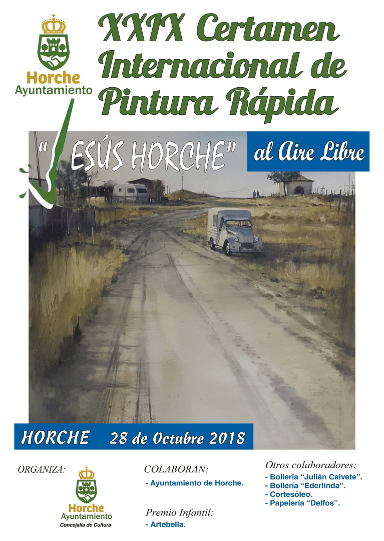 El XXIX Certamen Internacional de Pintura Rápida al Aire Libre “Jesús Horche”, nominado así en honor al pintor local fallecido, se celebrará el próximo domingo día 28 de octubre de 2018. El Ayuntamiento tendrá abierto el plazo de inscripción gratuita desde el día 26 de octubre hasta a las 10 horas del día de la celebración del certamen. Dicha inscripción deberá formalizarse mediante una solicitud presentada en las dependencias municipales o carta presentada en el registro general del Ayuntamiento. El tema obligado de las obras será Horche o su entorno identificable. Cada participante podrá presentar una sola obra, según dimensiones que figuran en las bases y que pueden consultarse en la página www.horche.org.