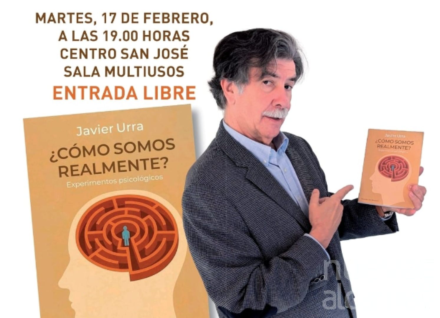 El psicólogo y escritor Javier Urra ofrecerá una charla-coloquio en Guadalajara para presentar su último libro, titulado «¿Cómo somos realmente? Experimentos psicológicos», publicado por la editorial Desclée De Brouwer. El acto tendrá lugar el martes 17 de febrero, a las 19.00 horas, en el Centro San José, en la Sala Multiusos, y contará con entrada libre.