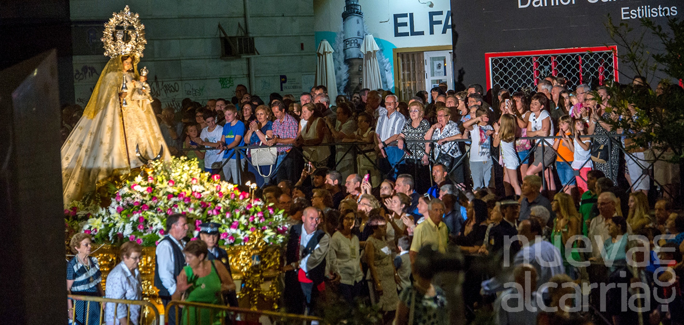 Cuidadosamente engalanada, como siempre, de blanco y rodeada de flores a sus pies, volvió a desfilar por el recorrido que discurre por el Paseo del Doctor Fernández Iparraguirre hasta el Santuario de la Antigua. Su paso era lento y cadencioso, permitiendo a la multitud reunida a los lados de las calles ver perfectamente a su patrona e, incluso, disponer de tiempo para rezarle teniéndola cerca. Por este motivo el ascenso de la Virgen hasta la plaza de Santo Domingo tuvo una larga duración. Un nutrido grupo de personas vestidas de alcarreños puso la nota de color a la procesión. Mujeres, hombres y familias enteras vestidas, en el caso de las mujeres, con saya roja o amarilla, delantal y blusa negra, pañuelo estampado, medias blancas caladas y zapatillas negras y, en el de los hombres, pantalón negro, camisa blanca, chaleco oscuro y fajín rojo. Cerrando el desfile pudo verse a algunos de los concejales de la Corporación municipal y autoridades provinciales, así como al alcalde capitalino, Antonio Román. Durante toda la procesión no faltaron los cánticos y sentidos rezos, intercalados también con momentos de recogimiento y silencio.