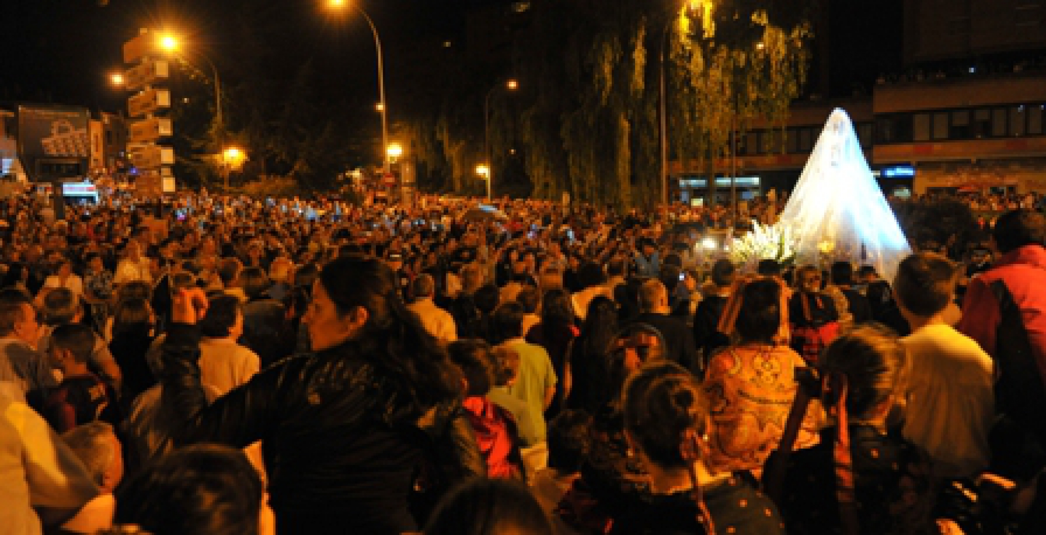 Puntual a las 20.00, en medio de un sonoro repiqueteo de campanas y bajo las notas del Himno Nacional interpretado por la Agrupación Musical del Cristo del Amor y de la Paz de San Ginés, la carroza de la Virgen de la Antigua salía con paso lente, solemne y majestuoso de la iglesia de El Fuerte de San Francisco. Con su manto blanco con flores bordadas y su velo dorado, que realzaba aún más su bella imagen, y rodeada de flores, la Patrona y Alcaldesa Perpetua de Guadalajara inició la procesión en su día grande, el de la Natividad de la Virgen. Pero sus primeros pasos fueron más lentos de lo normal, ya que minutos después de abandonar el templo, caían unas gotas que obligaron a proteger la imagen con un plástico, que retiraron poco después, al llegar a la rotonda de Bejanque, y que tuvieron que volver a colocarle antes de llegar al santuario, pues la lluvia, aunque ligera, volvió a hacer acto de presencia.