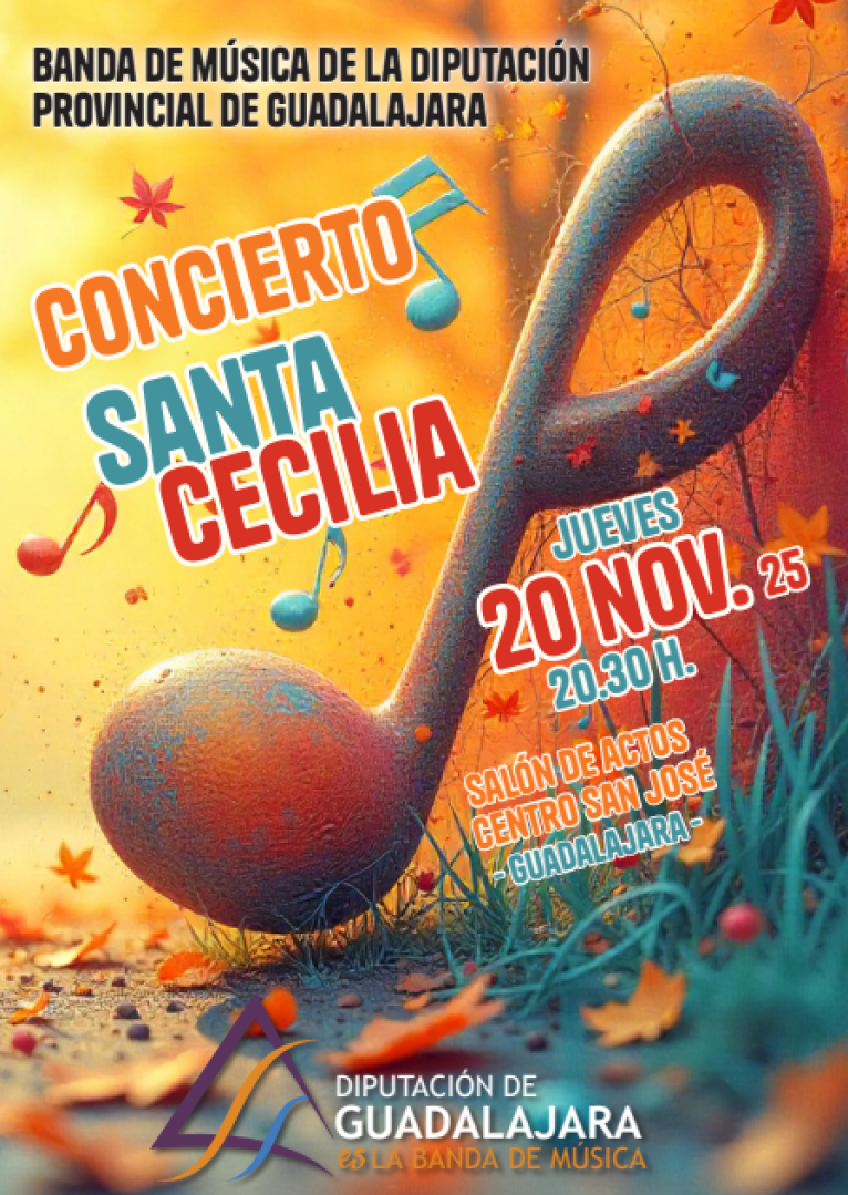 La Banda de Música de la Diputación Provincial ofrecerá este jueves, 20 de noviembre, su concierto anual con motivo del día de Santa Cecilia, patrona de la música. La actuación se celebrará a partir de las 20,30 horas en el salón de actos del Centro San José, con entrada libre y gratuita hasta completar aforo.