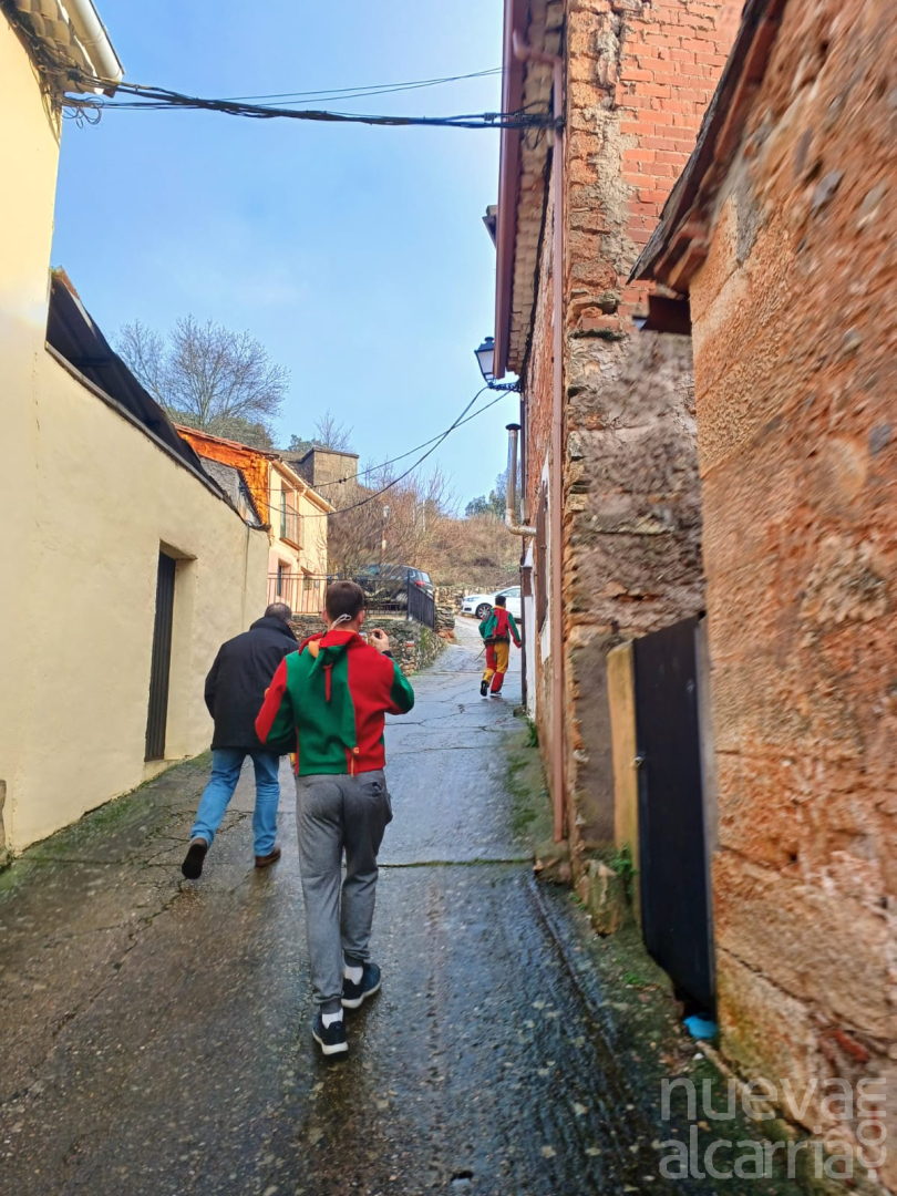 Arrancaba la matinal dominical mirando de reojo a la atmósfera, con un plomizo cielo que arrojaba una llovizna que amenazaba el desarrollo del día grande de Retiendas. Nueve de la mañana, a los pies de la parroquia, primer cohete que se lanza y marca el inicio del rito. Los Dulzaineros de la Pinocha comienzan la diana para ir despertando a la población. La botarga, encarnado en este año por Carlos Martín, es acompañada por su tamboritero, Rubén Macías, y comienza el recorrido de anunciar a los vecinos que la mañana se ha iniciado. Casa por casa recorre todo el casco urbano, bajo el tintinear de sus cencerros y golpes de castañuela al uso de cachiporra.
