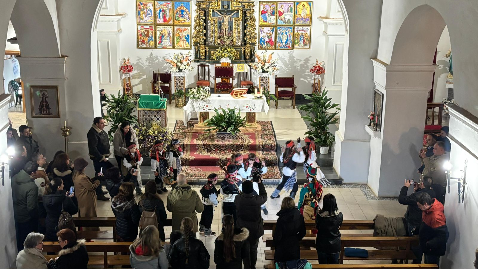 La menuda comitiva arranca la mañana desde el Centro Social, acompañados de los Gaiteros de Villaflores, para llegar hasta la parroquia. Allí se celebra la Santa Misa, y los pequeños cierran la eucaristía danzando tres bailes frente al altar. La iglesia presenta una gran entrada, presidida por el equipo de gobierno local, con su alcalde Rubén Marchamalo a la cabeza, acompañado por Santiago Marchamalo y Luis Almazán. También han asistido el diputado regional Iván Sánchez y el diputado provincial Víctor Morejón.