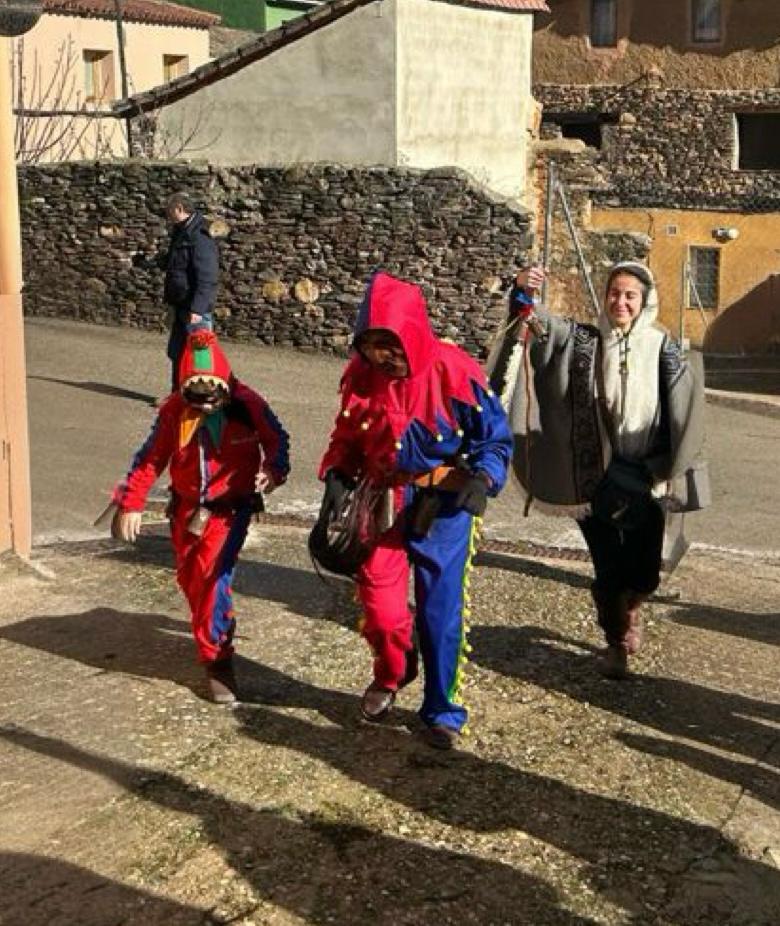 Soleada y animada mañana que aprovecha el lapso entre frentes. La Botarga y el Mayordomo han vuelto a ser protagonistas en Valdesotos con motivo de la Virgen de las Candelas.