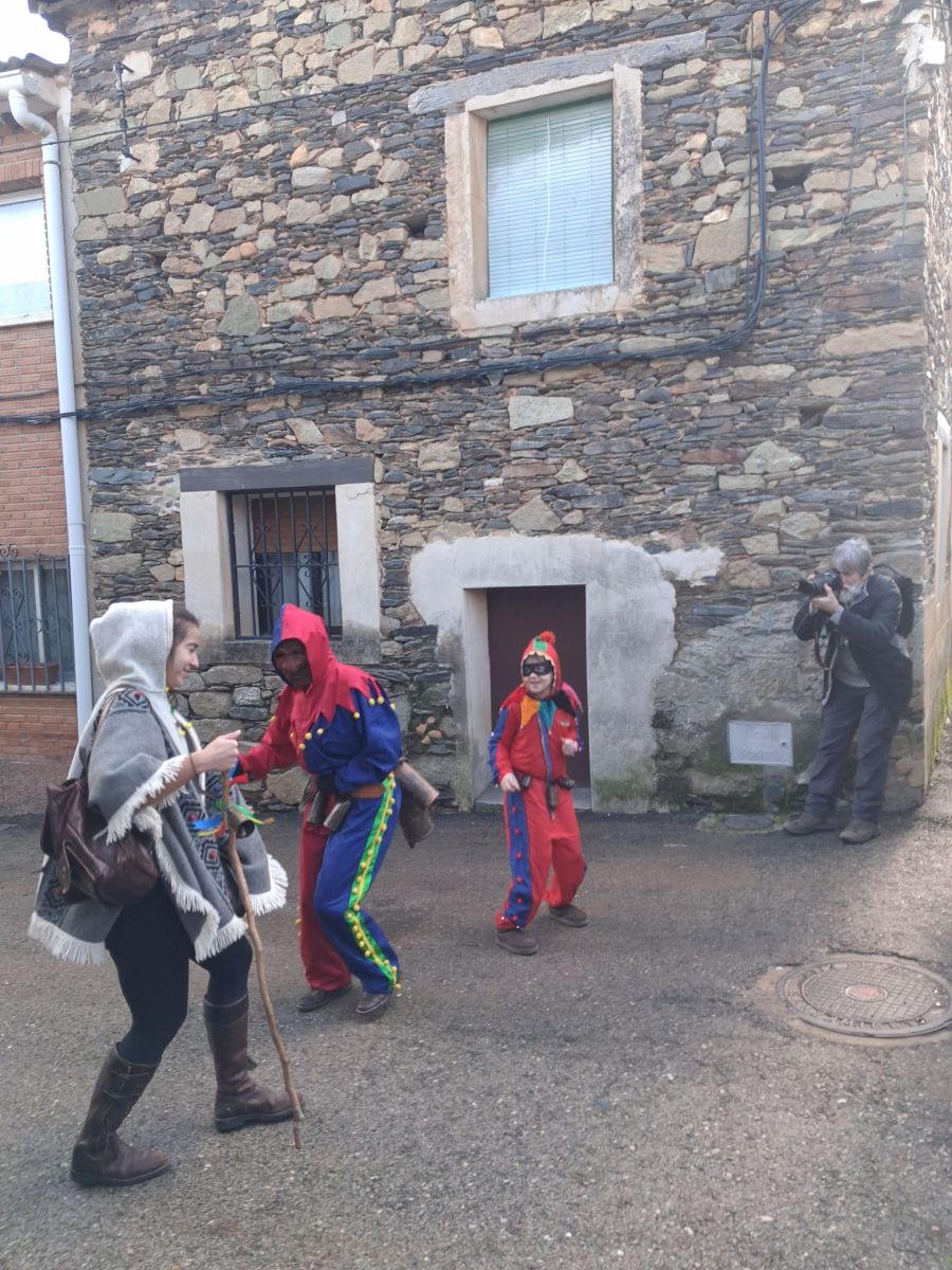 No faltaron los bailes que ofrecieron los dulzaineros, para animar al baile al respetable. Y como una muestra de asegurar el futuro, a la cita también se sumó una botarga infantil, que copia el ropaje de su hermana mayor: traje azul y rojo, con sombrero en forma de cono, de colores a la inversa de la bayeta original. Porta cencerros, máscara de cuero y blande una fusta de cola de toro.