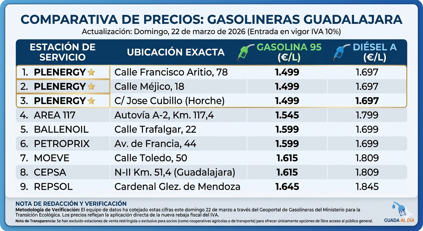 Hoy no solo cambia el calendario, cambia la factura de miles de conductores. Con la entrada en vigor del Real Decreto que reduce el IVA de los carburantes al 10%, las estaciones de servicio de Guadalajara han amanecido en una carrera frenética por ajustar sus precios.