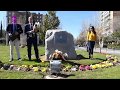 Tras la lectura del manifiesto, se ha depositado un ramo de flores y dos carteles con la imagen del Miguel Ángel Blanco al pie de la placa que recuerda en la céntrica glorieta de las Víctimas del Terrorismo.