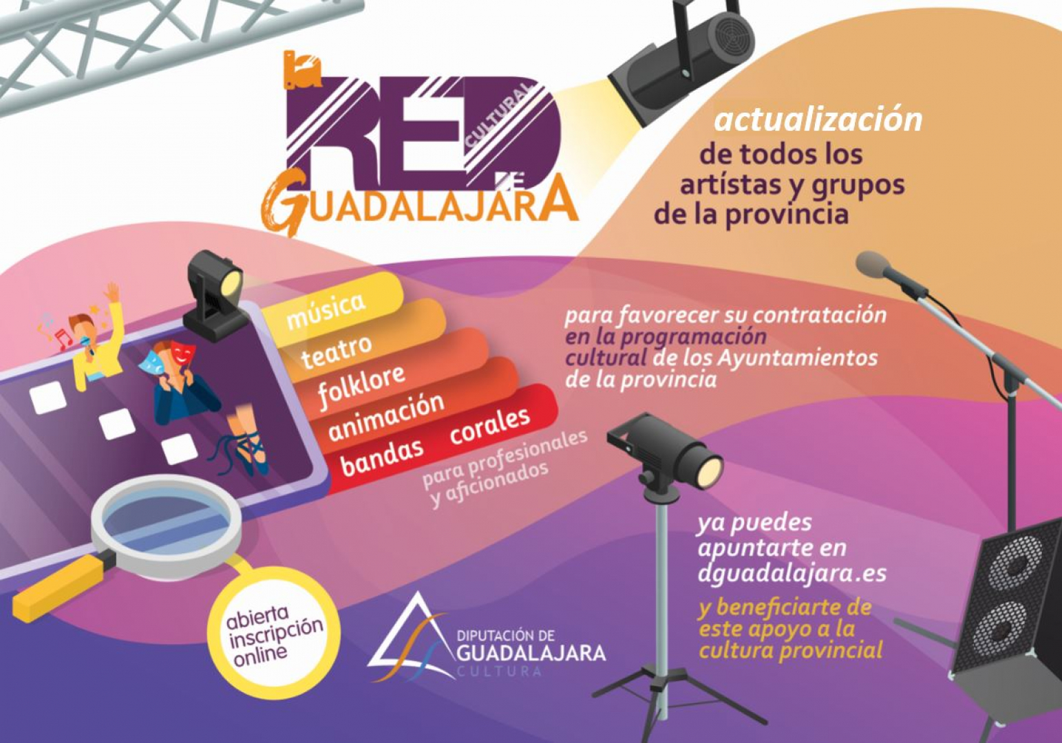 La “Red Cultural de Guadalajara” fue creada por la Diputación Provincial en el año 2021, con el objetivo de reunir en un directorio la oferta de espectáculos escénicos, musicales y audiovisuales de artistas, compañías y grupos artísticos de la provincia, tanto profesionales como aficionados.