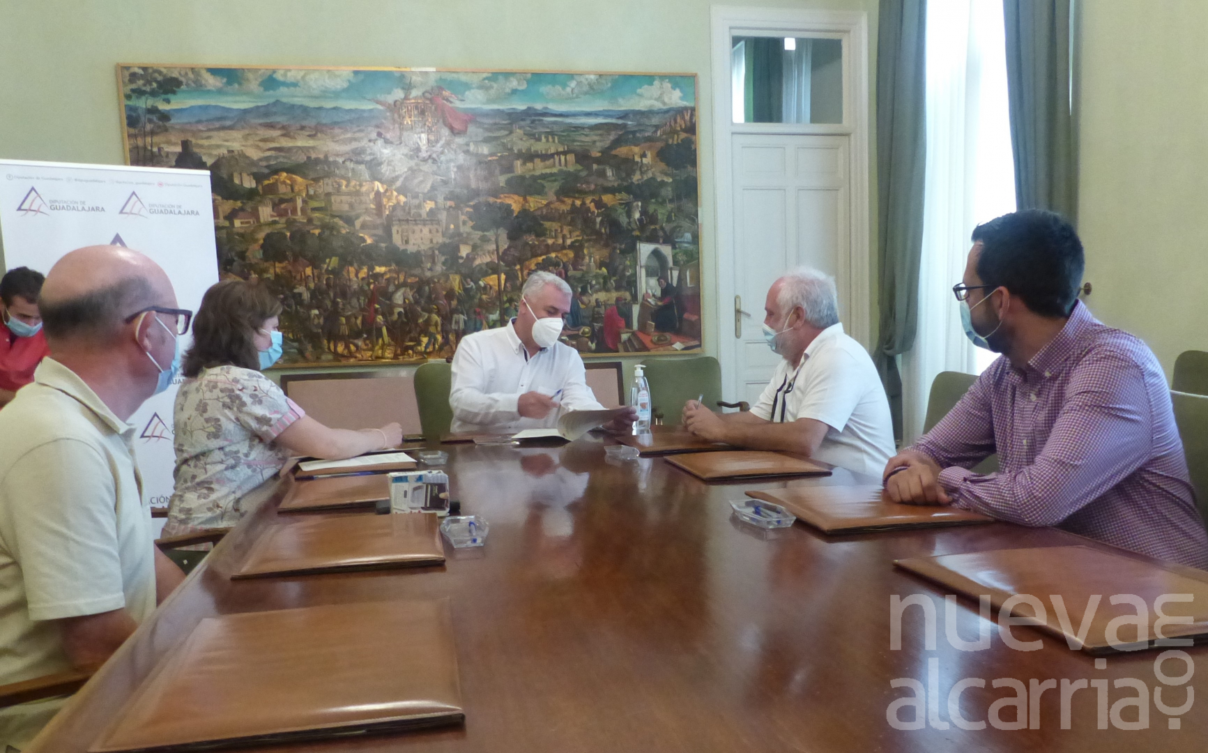 El presidente de la Diputación también ha firmado un convenio con la presidenta de la Mancomunidad de Municipios del Alto Tajo, Ester Rubio, para apoyar la gestión sostenible y conjunta de los recursos forestales de los ocho municipios que la integran: Arbeteta, Armallones, Peñalén, Peralveche, Poveda de la Sierra, El Recuenco, Villanueva de Alcorón y Zaorejas, incluyendo este las pedanías de Huertapelayo y Villar de Cobeta.
