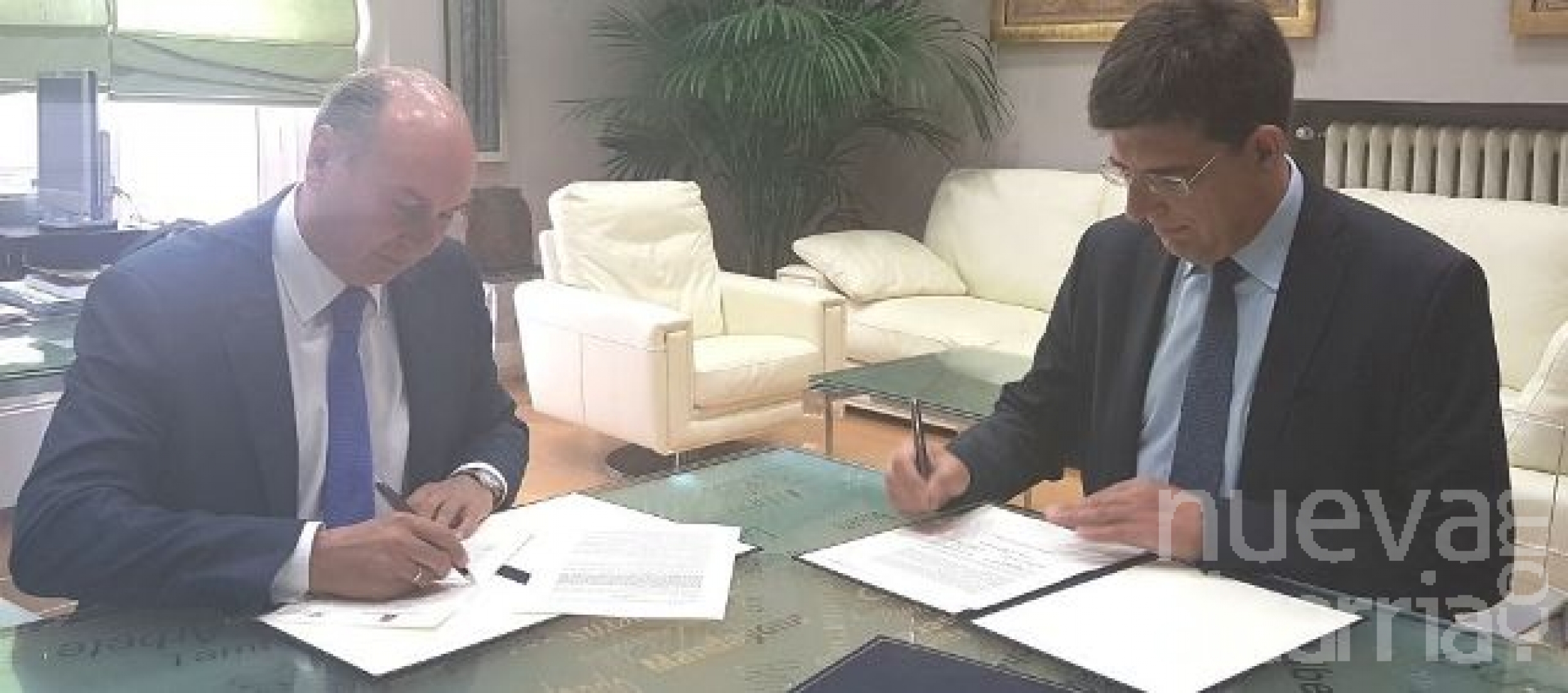 El presidente José Manuel Latre y el vicerrector del Campus de Guadalajara Carmelo García han firmado el convenio de colaboración para el desarrollo de los programas universitarios.