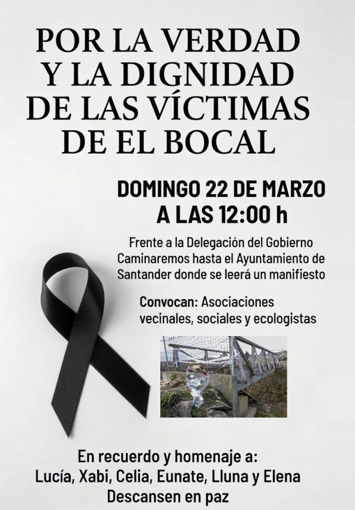 Este domingo centenares de vecinos y colectivos de Cantabria se manifiestan en Santander para exigir verdad, transparencia y responsabilidades por el colapso de la pasarela de El Bocal, donde el pasado 3 de marzo perdieron la vida seis jóvenes de entre 19 y 22 años. La marcha de hoy busca homenajear a todas ellas, acompañar a sus familias y reclamar que una tragedia así no vuelva a repetirse. En Guadalajara, donde Elena dejó huella en el instituto y en las protectoras de animales, el sentimiento es el mismo: dolor, pero también la necesidad de justicia y seguridad en infraestructuras públicas.