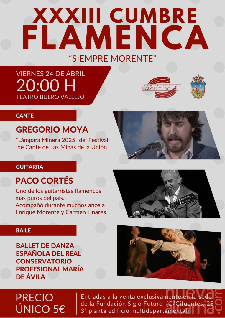 La Fundación Siglo Futuro celebrará el próximo viernes 24 de abril, a las 20.00 horas, en el Teatro Buero Vallejo de Guadalajara, la XXXIII Cumbre Flamenca, una de las citas anuales con más trayectoria de su programación cultural.