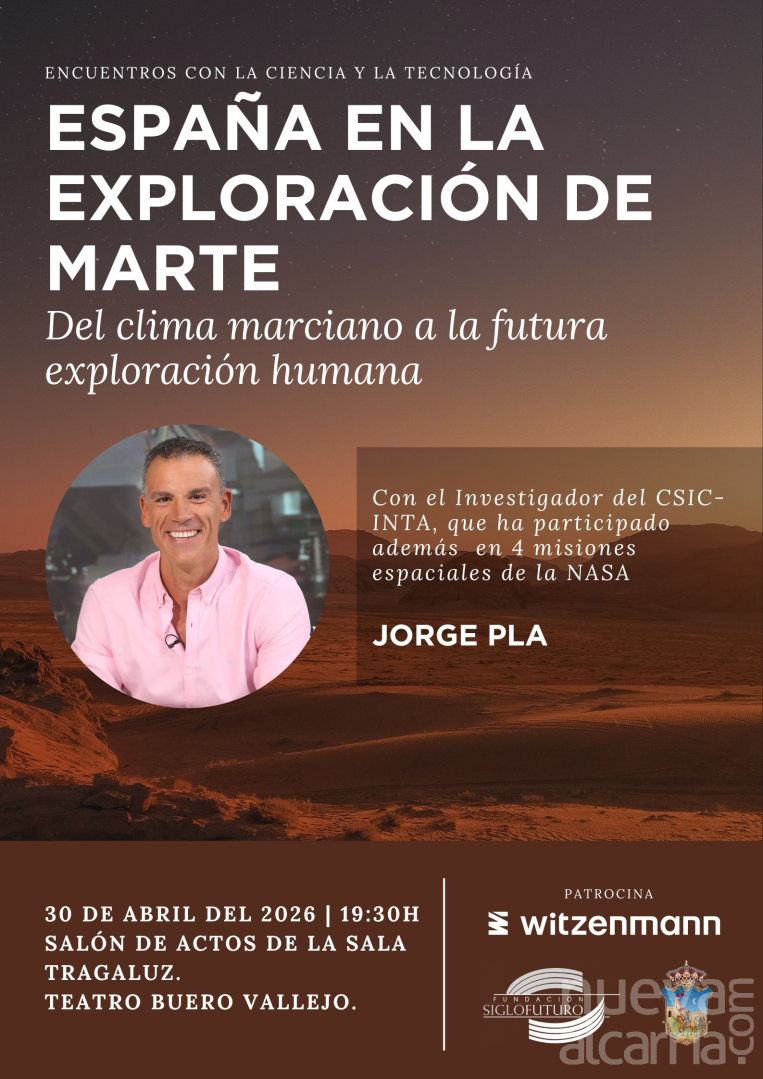 La primera actividad tendrá lugar el jueves 30 de abril, a las 19.30 horas, en el salón de actos de la Sala Tragaluz, con entrada libre hasta completar aforo. La cita se enmarca en el ciclo “Encuentros con la ciencia y la tecnología” y consistirá en la conferencia-coloquio “España en la exploración de Marte: del clima marciano a la futura exploración humana”.