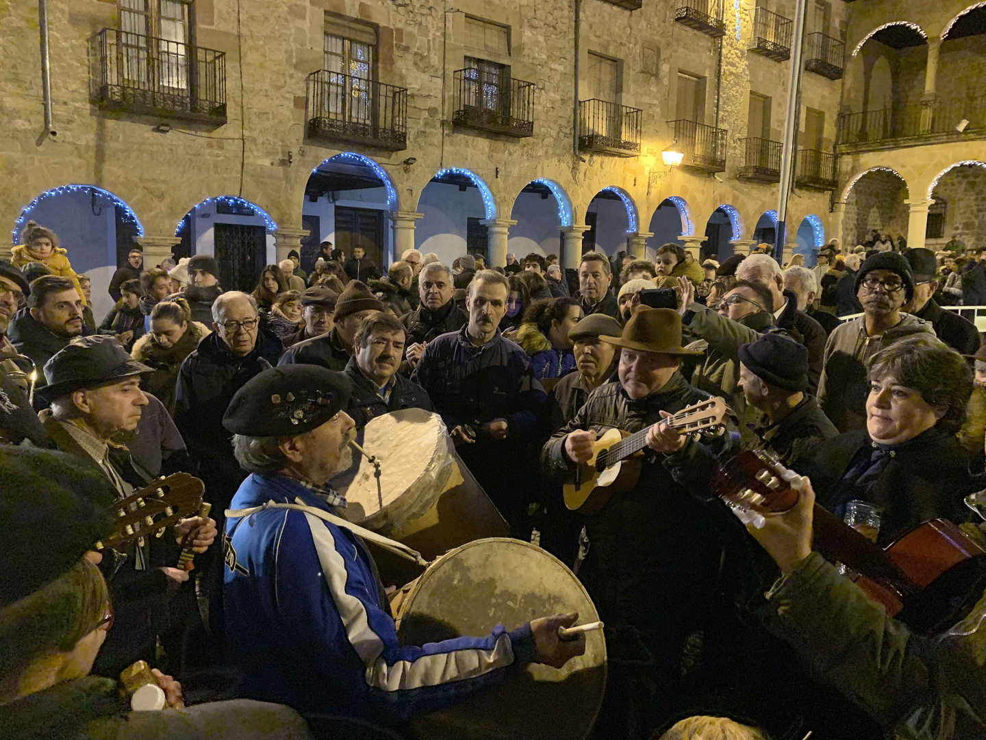 Por fin, la comitiva llegaba a la Plaza Mayor, donde los presentes pudieron combatir el frío, menos que otros años, con un caldito caliente, un vaso de vino, bocadillo de jamón y unos bollos, que ofrecían los integrantes de la Rondalla. Por supuesto, la ronda terminaba con el otro clásico de la Navidad local, como es el villancico de Las Doce Palabritas. La alcaldesa de Sigüenza, María Jesús Merino, fue una de las integrantes de la Gran Ronda de Navidad. “Si el sábado les escuchábamos en El Pósito, hoy lo hemos hecho en las calles de Sigüenza, poniendo la banda sonora a nuestras fiestas e invitando a acompañarles a toda la ciudad. Nuestra Rondalla es el espíritu de nuestra Navidad, y nos lo ha contagiado a todos”, señalaba.