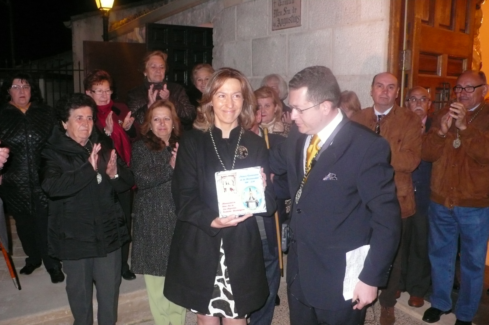El presidente de la Hermandad, Sergio Sánchez, quiso agradecer la implicación de la máxima responsable de la Institución Provincial así como su asistencia a la procesión entregándole una placa de reconocimiento y permitiendo su firma en el libro de honor de la Hermandad. Por su parte, Guarinos se mostró sinceramente agradecida y quiso mostrar su admiración por una Hermandad que cumple nada menos que cien años de historia, cien años de devoción a Nuestra Señora de las Angustias, patrona de Escariche, con una implicación digna de resaltar. Asimismo, reiteró el orgullo de pertenecer a ella como Hermana de Honor.
