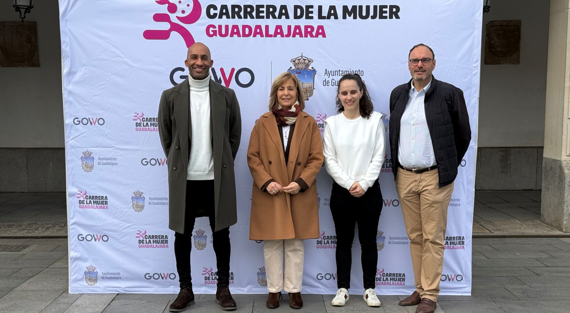 El concejal de Igualdad, Roberto Narro, junto al concejal de Deportes, Armengol Engonga, la directora de Gestión Deportiva Integral, María Amarilla, y la presidenta de la Asociación Española Contra el Cáncer (AECC) en Guadalajara, Carmen Heredia, han dado a conocer esta mañana los detalles de la primera Carrera de la Mujer de la ciudad, “un evento que combina el impulso a la igualdad, la promoción del deporte y la movilización social en la lucha contra el cáncer de mama”.