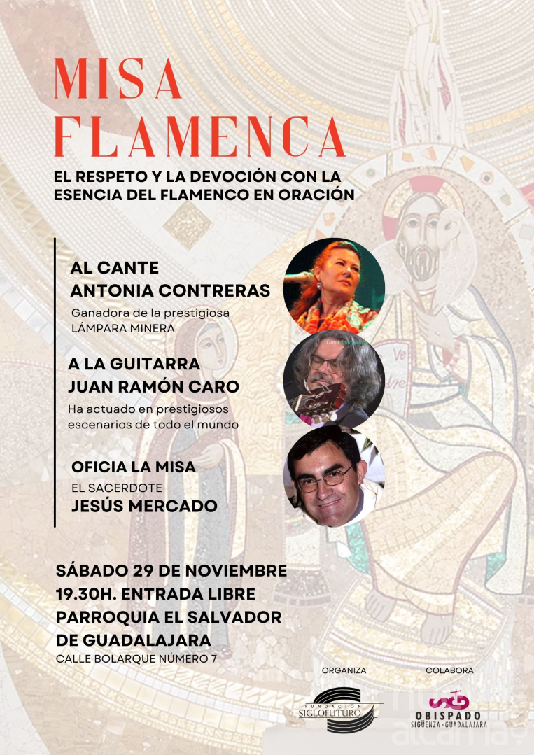 Guadalajara celebrará este sábado, 29 de noviembre, su primera misa flamenca. El acto tendrá lugar a las 19.30 horas en la parroquia de El Salvador (calle Bolarque, 7) con entrada libre, y pondrá fin a la programación cultural de noviembre organizada por la Fundación Siglo Futuro, en colaboración con el Obispado de Sigüenza-Guadalajara.