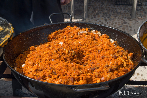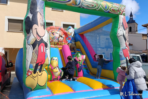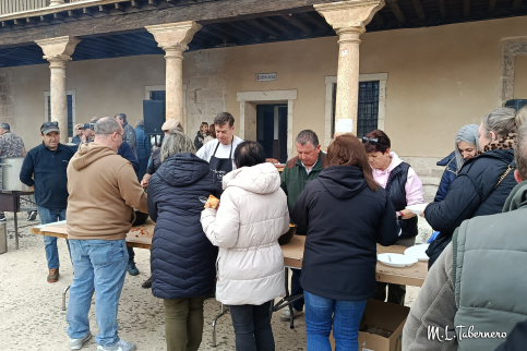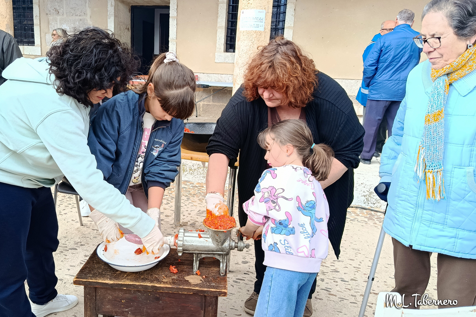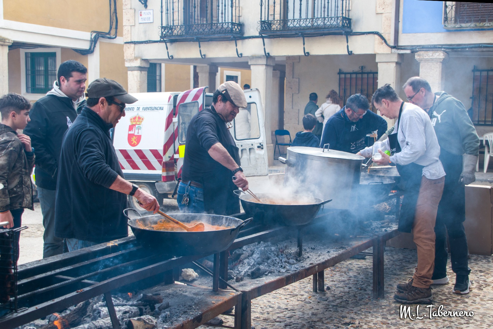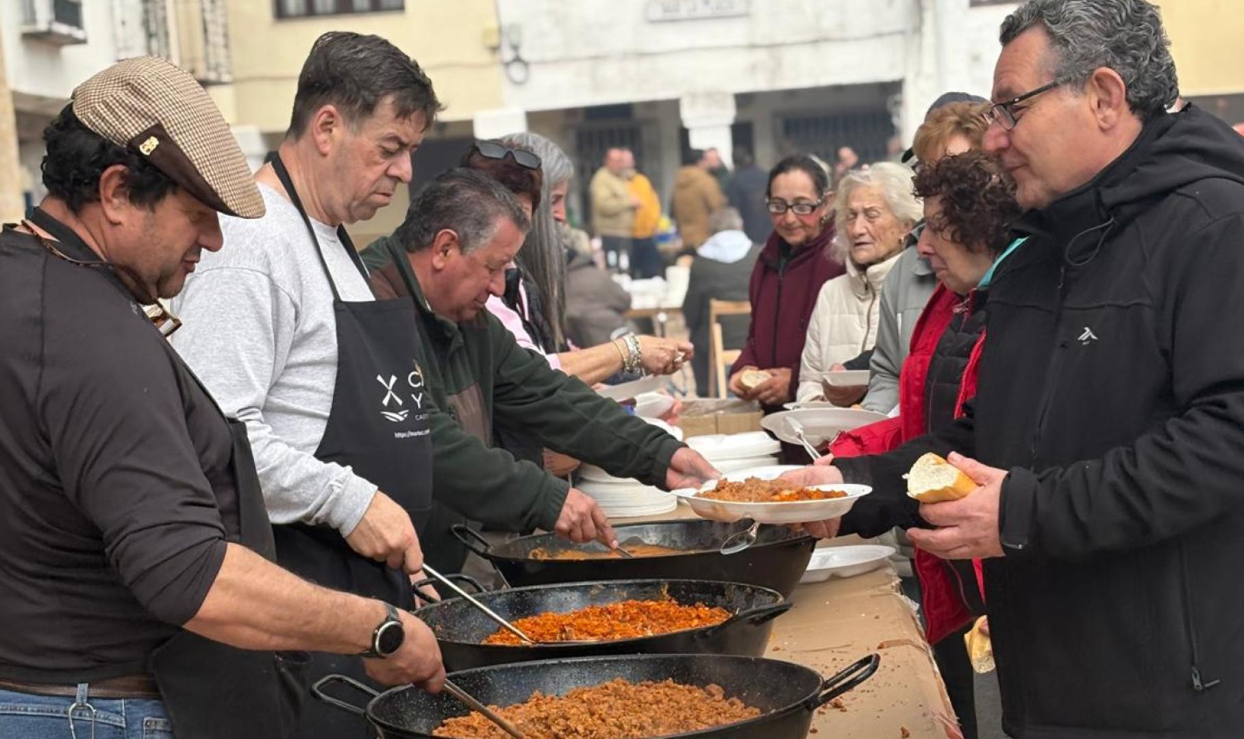 Desde temprano, la plaza mayor –con su iglesia al fondo vigilando como siempre– se llenó de mesas, paellas gigantes y voluntarios con delantales. El Ayuntamiento de Fuentelencina y la Asociación Cultural San Agustín lo organizaron todo: el despiece del cerdo, el embutido en vivo, las migas humeantes y las pruebas de picadillo que volaban de las sartenes. No faltaron las manos expertas removiendo en las grandes ollas, ni los niños correteando alrededor de inflables coloridos, mientras los mayores charlaban con un bocata en la mano.