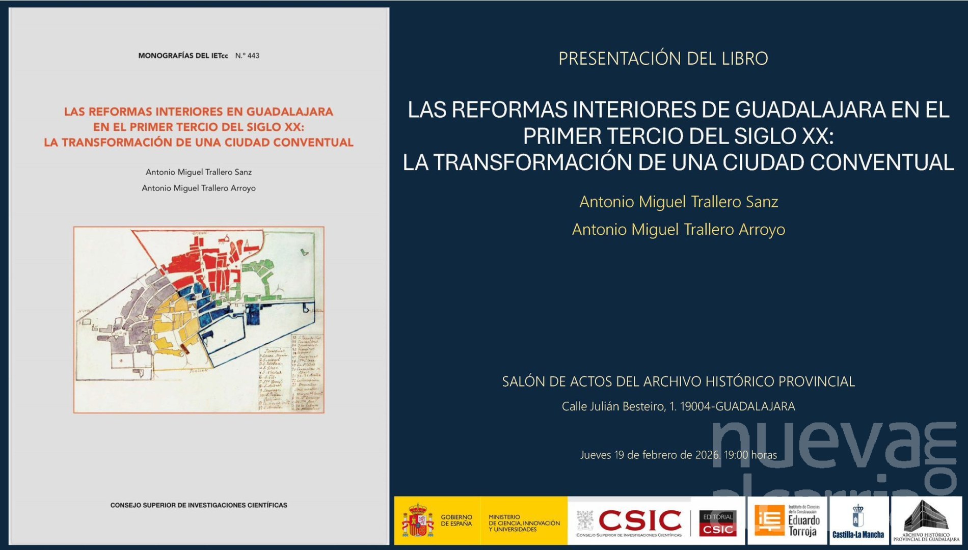 El salón de actos del Archivo Histórico Provincial de Guadalajara acogerá el próximo jueves 19 de febrero, a las 19.00 horas, la presentación del libro Las reformas interiores en Guadalajara en el primer tercio del siglo XX: la transformación de una ciudad conventual, del investigador Antonio Miguel Trallero Sanz.