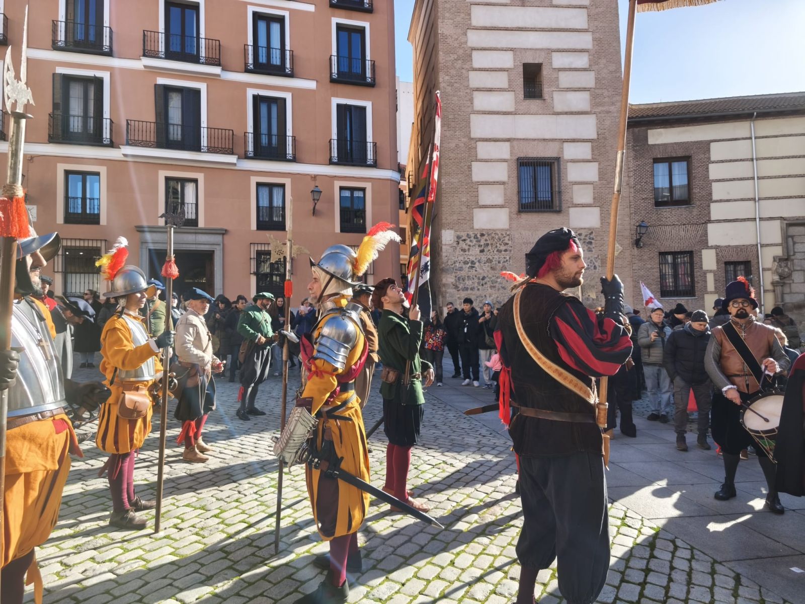 El evento, que se prolonga durante todo el fin de semana, conjuga vida cotidiana del XVI, campamentos de época, talleres y performances en espacios emblemáticos como la Plaza de la Villa y la Plaza Mayor, con desfiles nocturnos que evocan las míticas compañías de los Tercios de Flandes.