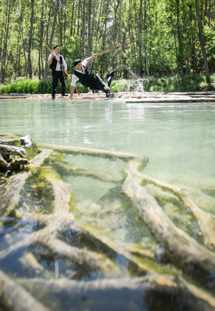 Durante siglos, los gancheros transportaron madera por el río Tajo, arriesgando su vida y forjando la identidad de la región. Estas imágenes son un tributo a su valentía y esfuerzo, mostrando sus manos, las técnicas del oficio y la camaradería. La "ganchada" es una recreación simbólica que revive este pasado, un acto de memoria que une a generaciones.