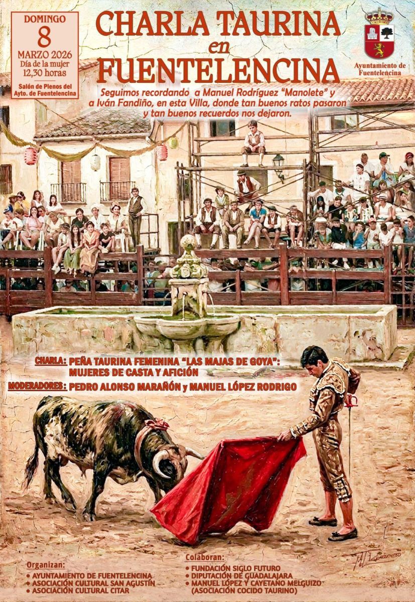 La actividad principal será la charla taurina titulada "Mujeres de casta y afición", que contará con la participación de la Peña Taurina Femenina "Las Majas de Goya". Esta entidad, nacida en 1994, destaca por su labor en la defensa de la fiesta nacional, donde sus integrantes —mujeres de diversos ámbitos profesionales— trabajan para "fomentar la afición taurina entre las mujeres y difundir la cultura del toro". El coloquio, moderado por Pedro Alonso Marañón y Manuel López Rodrigo, servirá también para rendir tributo a la memoria de Manuel Rodríguez "Manolete" y de Iván Fandiño, figuras históricas que dejaron una huella imborrable en la localidad.