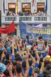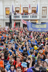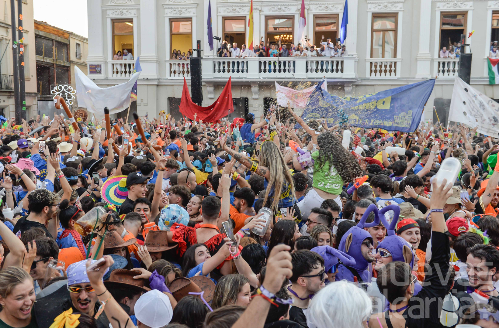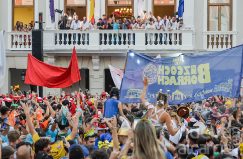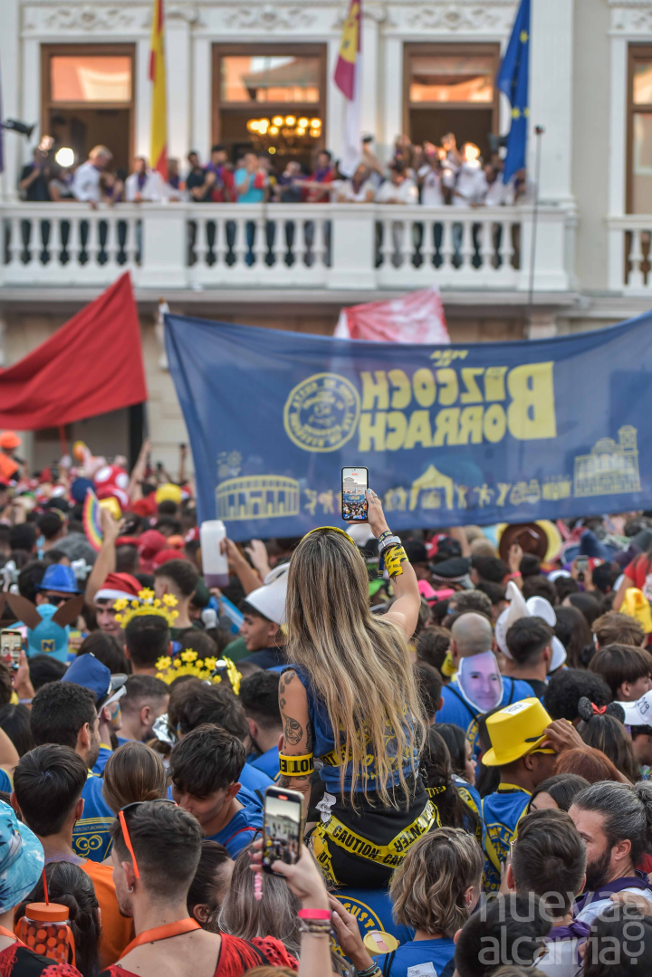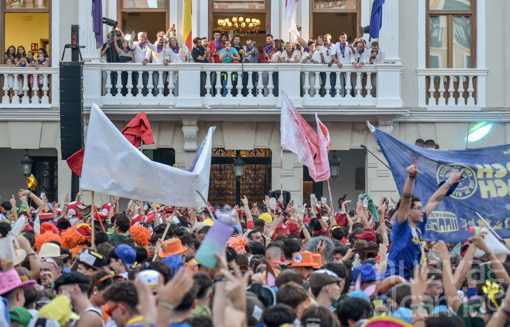 El vicepresidente de El Buey reconoció que la ocasión era “un gran honor” para la peña. “Hemos querido realzar la unidad de Guadalajara con las peñas, que llenamos todo de color y alegría. Queremos que todo el mundo disfrute y lo pase genial”. El pregón, cargado de entusiasmo, fue recibido con aplausos y vítores por una plaza abarrotada que estalló en gritos e ilusión con la explosión del chupinazo.