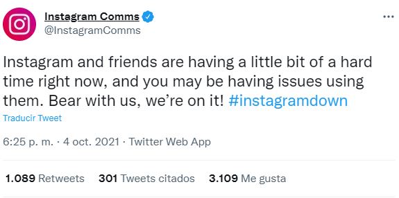 "Tenga paciencia, estamos teniendo problemas, pero estamos en ello", asegura en su cuenta corporativa Instagram.