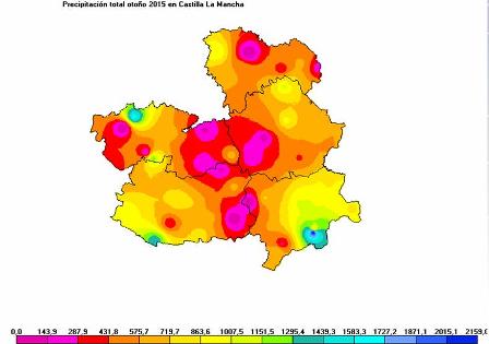 Tampoco las precipitaciones han cumplido con los valores que se esperaban. El periodo entre septiembre y noviembre ha sido muy seco en la región, excepto en la base aérea de Albacete, que ha sido normal. En Molina de Aragón se recogieron 59,4 milímetros, frente a los 134,1 del valor normal. Eso convierte al periodo en muy seco. En la capital, por su parte, se superó el dato molinés con 68,4 milímetros. El mes de septiembre fue normal en Toledo, seco en Cuenca y Ciudad Real, húmedo en la base aérea de Albacete, y muy seco en Molina de Aragón. Aemet destaca las precipitaciones registradas el día 2 en Cuenca, donde se recogieron en 10 minutos 8,4 litros por metro cuadrado; el día 4 en Salvacañete (Cuenca), con 14,2 litros; o Hellín (Albacete), con 7,3 litros por metro cuadrado en 10 minutos. El día 7, la estación de Las Eras (Albacete) recogió 18 litros, y en Tomelloso (Ciudad Real) se registraron 8. El día 27, en la estación de Mira (Cuenca) se registraron 8,2 litros por metro cuadrado. Por último, en la estación de Almansa (Albacete), se contaron hasta 7 litros por metro cuadrado en apenas 10 minutos. Lamentablemente, en octubre no se registraron apenas lluvias, por lo que fue un mes muy seco.