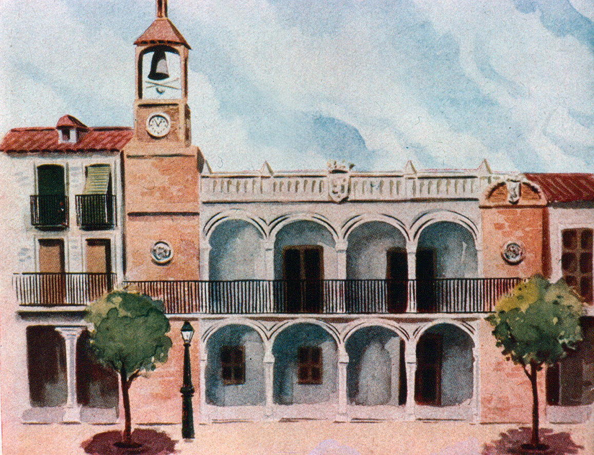 Guadalajara. Ayuntamiento. Acuarela de Camarillo.