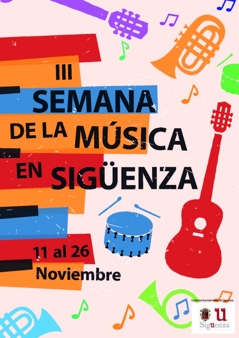 El Ayuntamiento de Sigüenza y la Cofradía de Santa Cecilia, en colaboración con todas las asociaciones y colectivos que tienen que ver de alguna manera con la música en la ciudad, y también con entidades privadas, convocan la que va a ser III Semana de la Música en Sigüenza, alrededor de la onomástica de la patrona de los músicos.