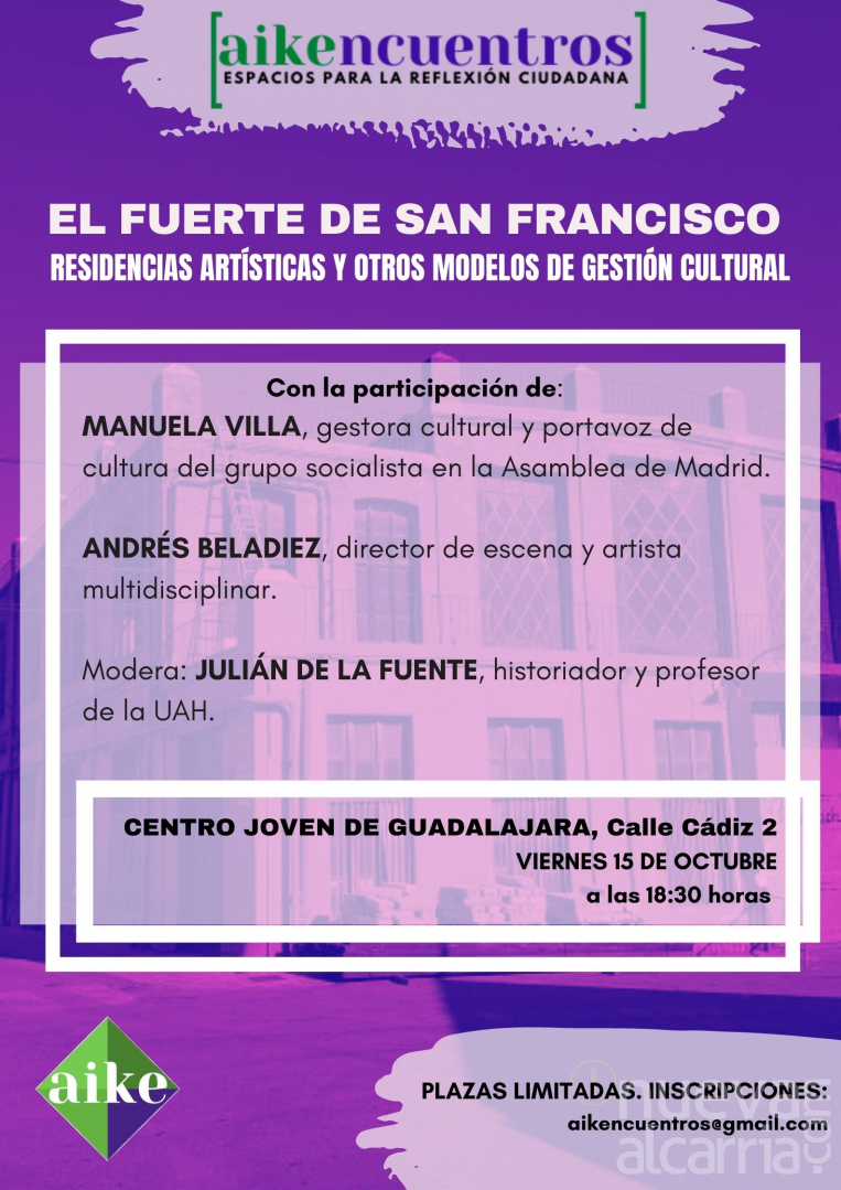 Aike ha presentado estas jornadas que se iniciaban con la charla sobre el Centenario de la Revuelta de los Comuneros en mayo de este mismo año en la que contaban con el historiador Javier Plaza, este fin de semana celebraban la segunda con una visita a la exhumación de la Fosa 4 con el equipo técnico y el presidente de la ARMH, Emilio Silva. Y este viernes realizan el tercer encuentro, en formato mesa redonda: El Fuerte de San Francisco, residencias artísticas y otros modelos de gestión cultural.