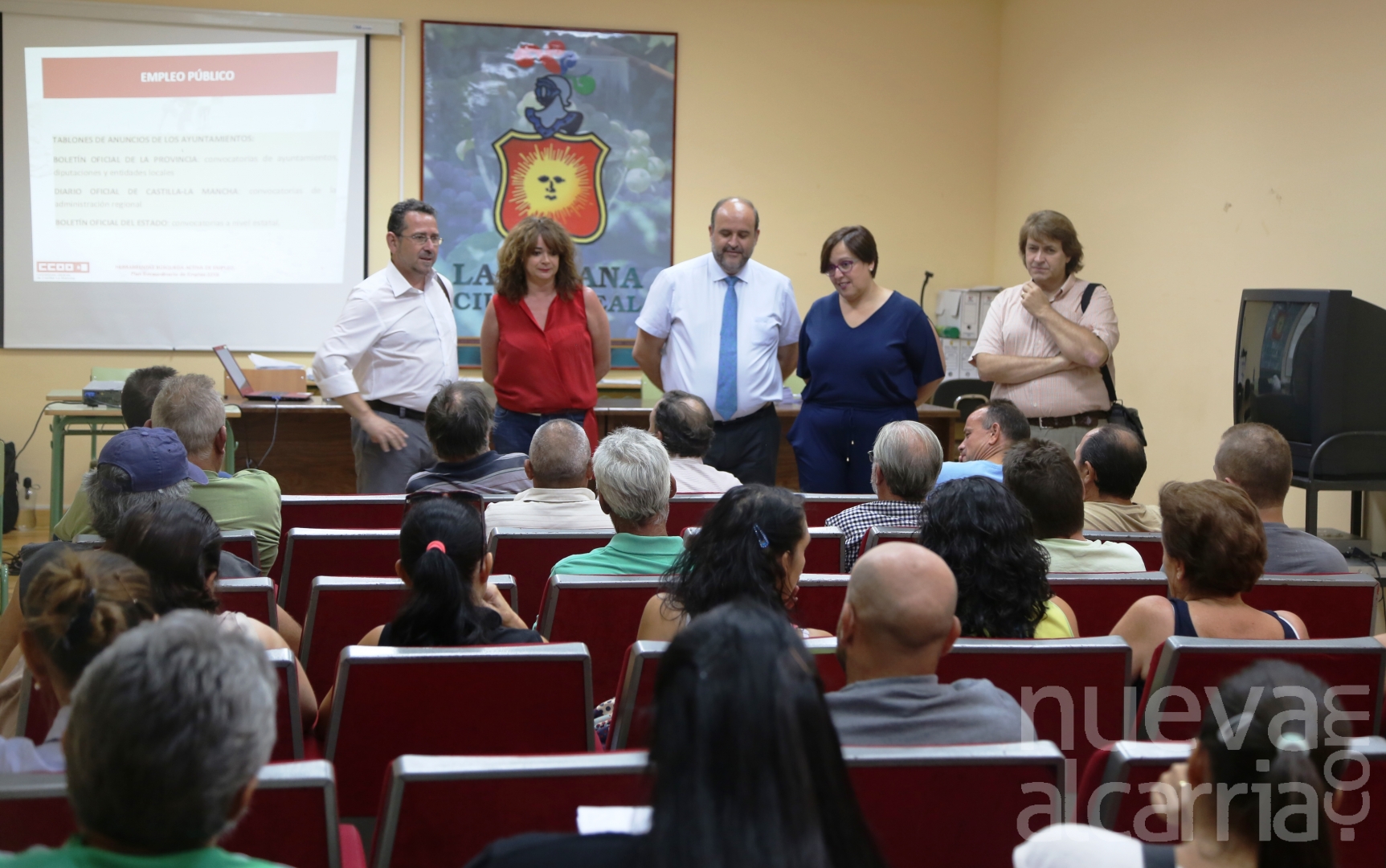El vicepresidente regional ha estado acompañado por la delegada de la Junta de Comunidades en Ciudad Real, Carmen Teresa Olmedo; el alcalde de la localidad, Luis Díaz-Cacho, y la responsable de empleo de CCOO en Castilla-La Mancha, Lola Santillana, sindicato que imparte estas sesiones de orientación.